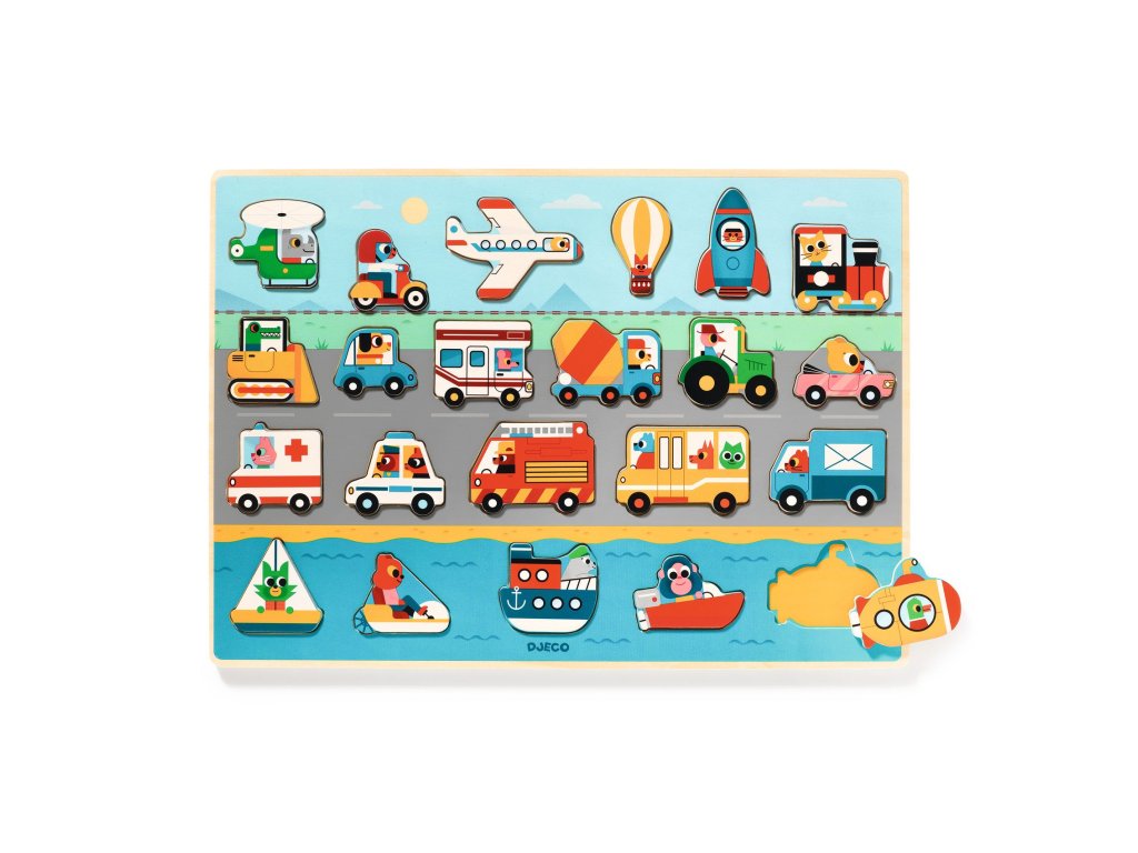 Drevené edukačné puzzle Dopravné prostriedkyFarebné drevené puzzle s motívmi dopravných prostriedkovDopravné prostriedky – drevené edukačné puzzle je zábavná a odolná drevená skladacia hračka, ktorá deťom pomáha spoznávať rôzne dopravné prostriedky. Každé vozidlo má na ceste svoje miesto.Prečo si vybrať puzzle od Djecovhodné pre deti od 2 rokovveľké drevené dieliky ľahké na držaniefarebné obrázky dopravných prostriedkovučí rozpoznávať tvary a názvy vozidielrozvíja motoriku a pozornosťČo si dieťa hrou rozvíjajemnú motorikukoordináciu ruka – okorozpoznávanie tvarovslovnú zásobu o dopravných prostriedkochObsah balenia22 drevených puzzle dielikovdrevená doska s tvarovými otvormi na skladanieDodatočné parametre