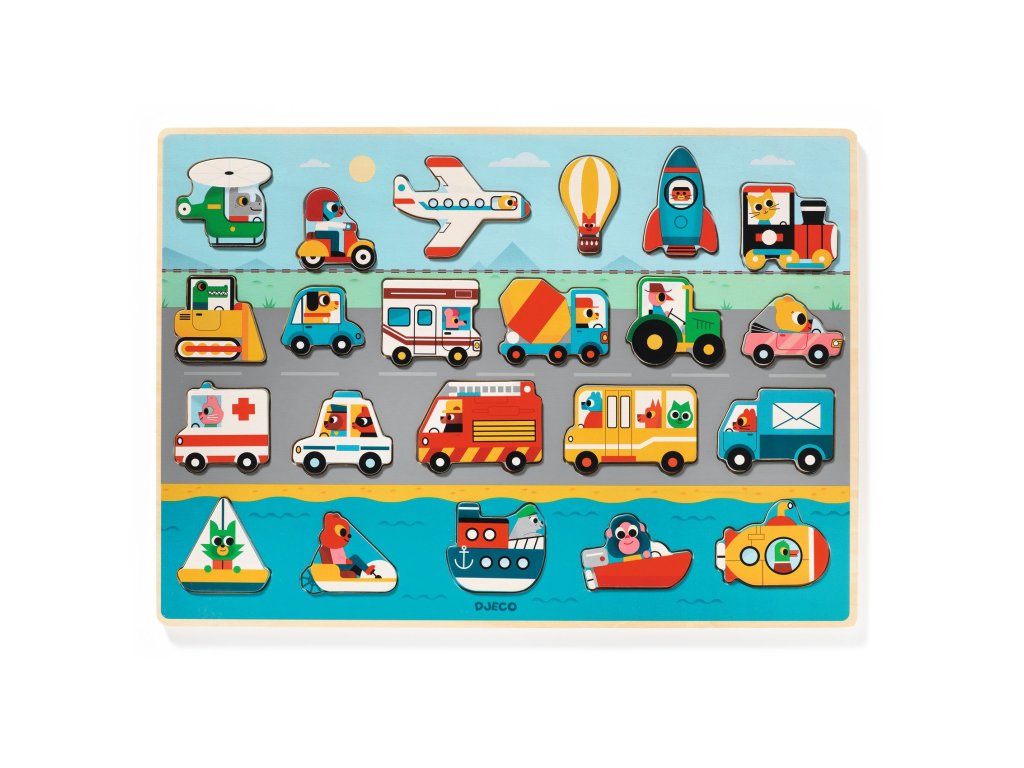 Drevené edukačné puzzle Dopravné prostriedky