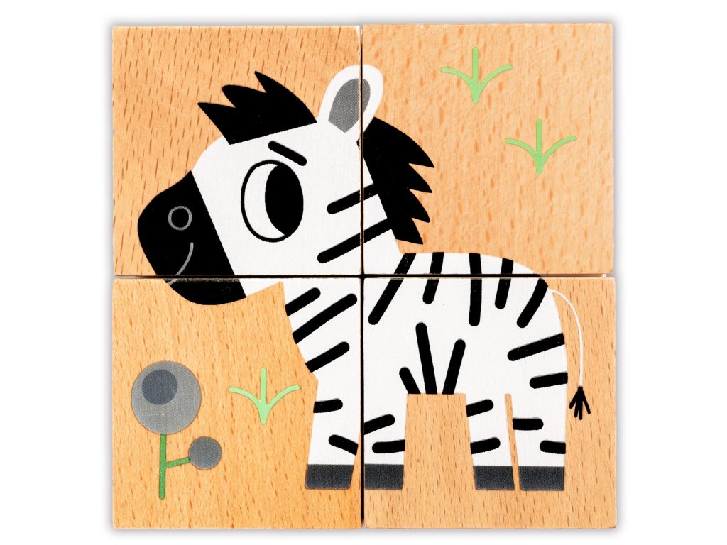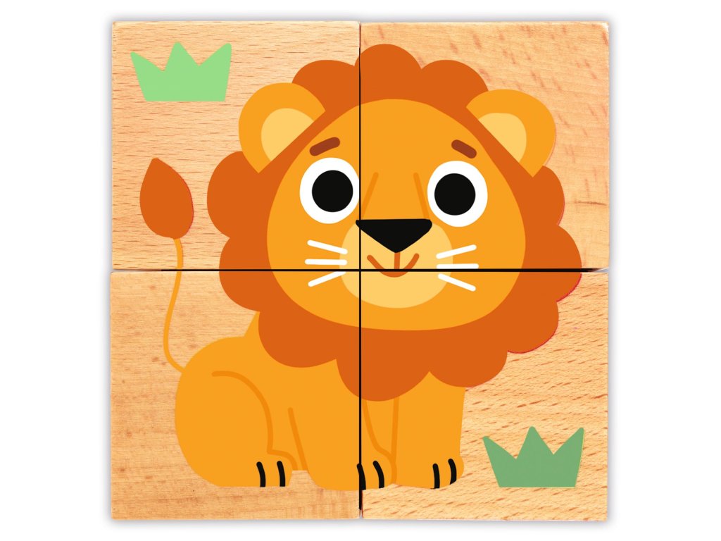 Drevené puzzle kocky Kamaráti z divočinyEdukačné drevené puzzle pre najmenších s motívom divokých zvieratKamaráti z divočiny – drevené puzzle kocky sú ideálnou hračkou pre malé deti, ktoré sa učia spoznávať obrázky, tvary a súvislosti. Pomocou drevených kociek deti skladajú obrázky zvieratiek z divočiny a objavujú, ako jednotlivé časti do seba zapadajú. Jednoduchý princíp hry podporuje samostatnú hru a prirodzené učenie hrou už od raného veku.Prečo si vybrať toto puzzle od Djecovhodné pre deti od 2 rokovdrevené kocky s ilustráciami divokých zvieratjednoduchý edukačný princíp vhodný pre malé detipodporuje učenie hrou bez zbytočnej frustráciemotívy zvieratiek, ktoré deti prirodzene zaujmúkvalitné a odolné drevené spracovanieObsah balenia4 drevené puzzle kocky s ilustráciami zvierat z divočinyDodatočné parametre
