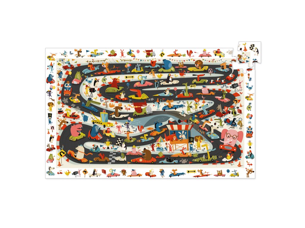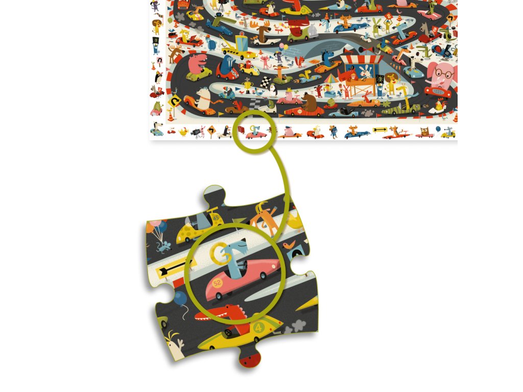 Objavovacie puzzle Automobilové preteky 54 ks Objavovacie puzzle pre nadšencov autíčok Objavovacie puzzle zobrazuje zábavné automobilové preteky a zároveň hľadaciu hru. Dieťa hľadá na poskladanom puzzle detaily podľa obrázkov na okraji. Tento set obsahuje 54 dielov a jeden plagát rovnakých rozmerov ako puzzle, ktorý slúži ako predloha a podložka na skladanie. 3, 2, 1, štart! Kto bude víťaz?S Djeco sa deti učia logicky premýšľať Objavovacie puzzle Automobilové preteky sú skvelým spôsobom, ako rozvíjať motorické schopnosti a logické myslenie u detí. Jednotlivé diely spolu tvoria zaujímavý obrázok z automobilových pretekov. Ideálny darček pre malých nadšencov autíčok.Dodatočné parametre