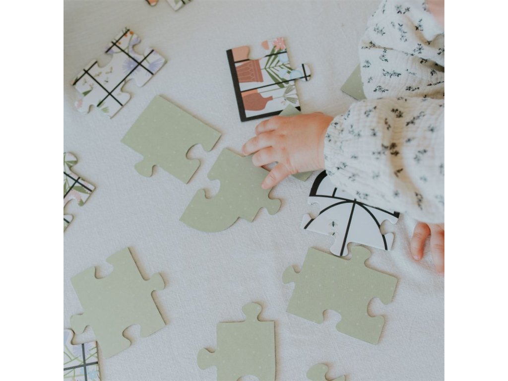- detské puzzle s originálnou ilustráciou na jednej strane, na rube má pôvabné bodky