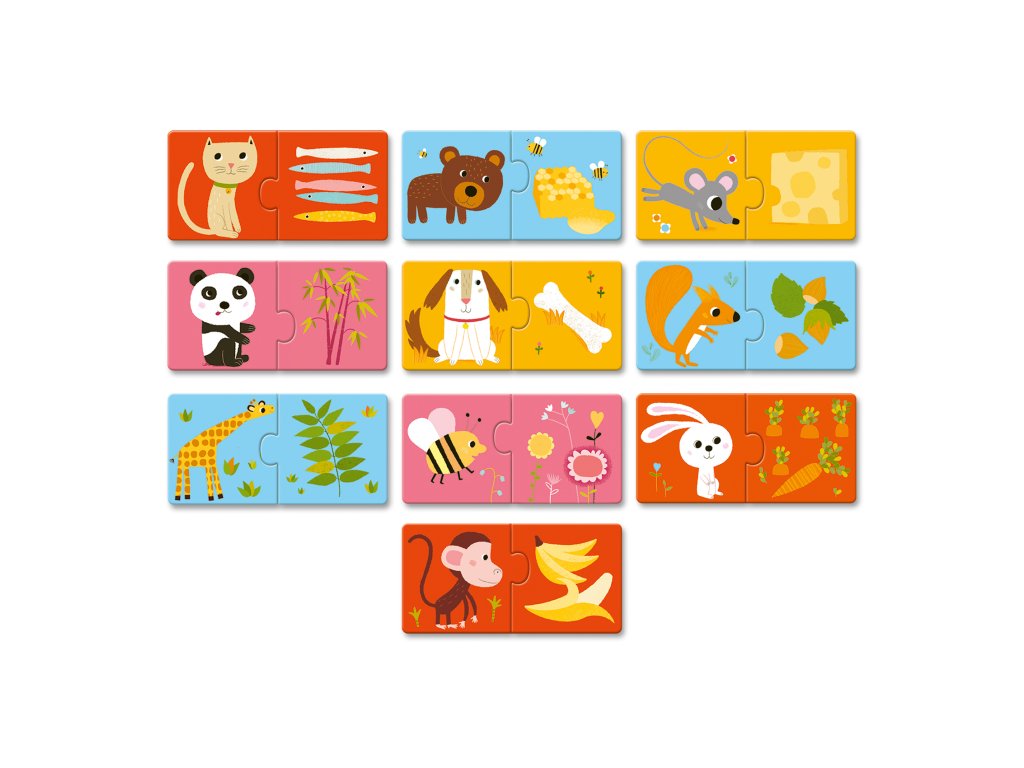 Puzzle duo Jedlo je hotovéPrvé párovacie puzzle pre deti – kto čo zje?Puzzle Duo – Jedlo je hotové! od značky Djeco sú jednoduché a hravé párovacie puzzle pre najmenšie deti. Úlohou dieťaťa je správne spojiť zvieratko alebo postavičku s jedlom, ktoré k nej patrí. Vznikajú tak logické a zrozumiteľné dvojice, ktoré deti ľahko pochopia a radi opakujú. Puzzle sú tvorené z 10 dvojdielnych skladačiek (spolu 20 dielikov) s pevnými a veľkými dielmi, ideálnymi pre malé detské ruky. Hra podporuje logické myslenie, slovnú zásobu aj jemnú motoriku a je skvelým prvým krokom k samostatnému skladaniu puzzle.Čo puzzle rozvíjajúlogické myslenie a pozorovaniejemnú motoriku a koordináciu ruka–okoslovnú zásobu a komunikáciupochopenie vzťahov a súvislostísamostatnosť pri hrePrečo si vybrať Puzzle Duo od Djecoideálne prvé puzzle pre detijednoduchý princíp párovaniapevné dieliky z kvalitného kartónuhravé ilustrácie typické pre Djecovhodné pre deti od 2 rokovDodatočné parametre