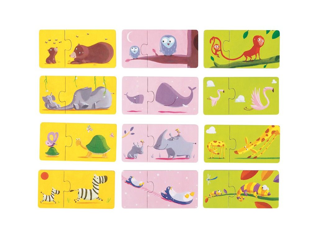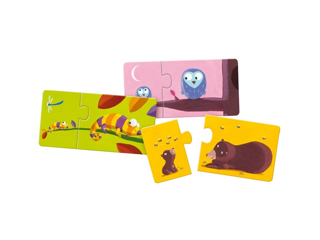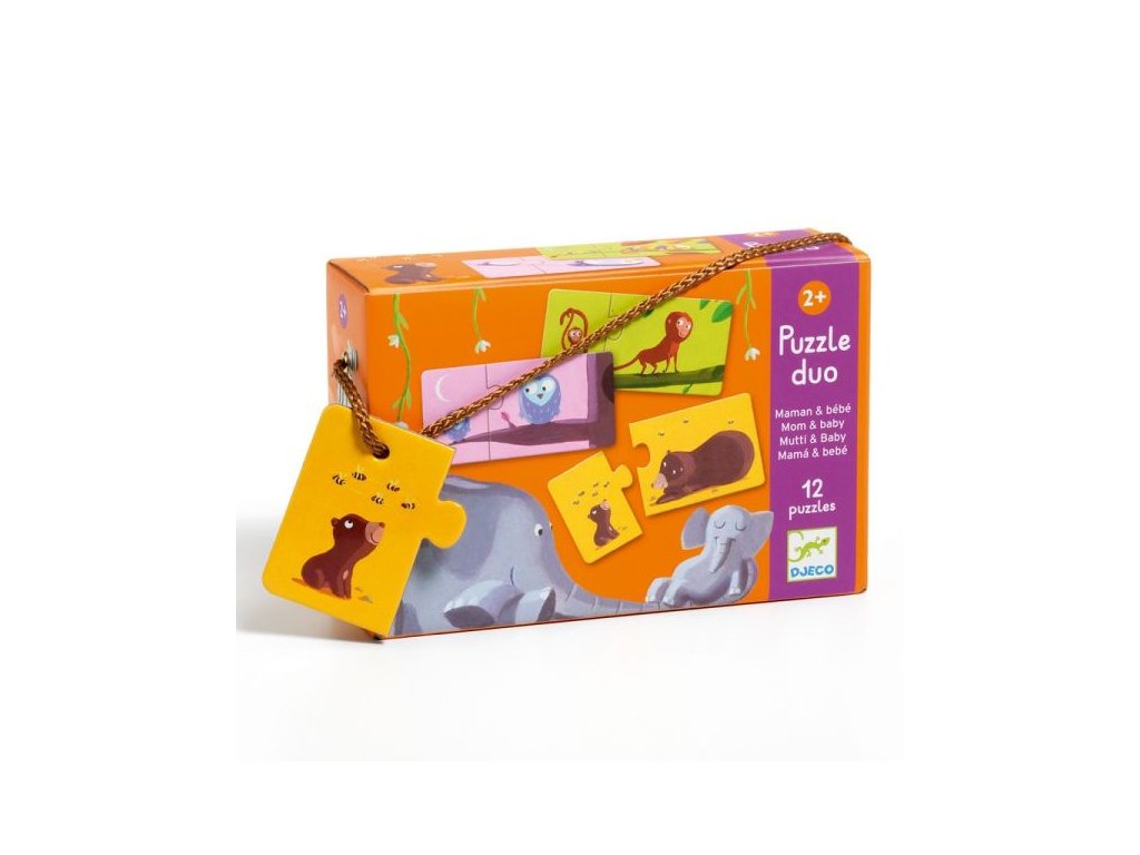 Puzzle duo Mláďatká sú milé dvojdielne puzzle pre najmenších, v ktorých deti spájajú dospelé zvieratko s jeho mláďatkom. Každý obrázok vznikne jednoduchým spojením dvoch dielikov – ideálne ako prvé puzzle, ktoré deti prirodzene vedú k poznávaniu sveta.