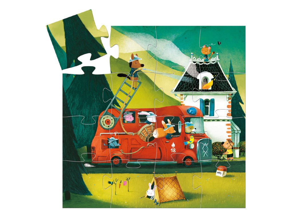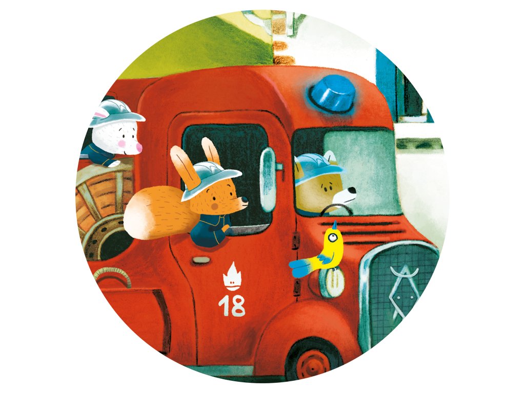 Puzzle Hasičské auto je krásne ilustrované detské puzzle, ktoré deti prenesie priamo do záchrannej akcie. Z 16 veľkých dielikov si poskladajú obrázok s rozmerom 25 × 25 cm, kde hasičské auto pomáha pri požiari domu. Dieliky sú vyrobené z pevného kartónu, aby sa s nimi dobre manipulovalo aj menším deťom.