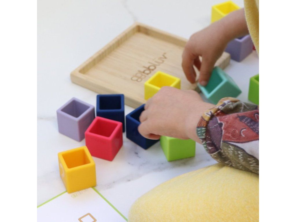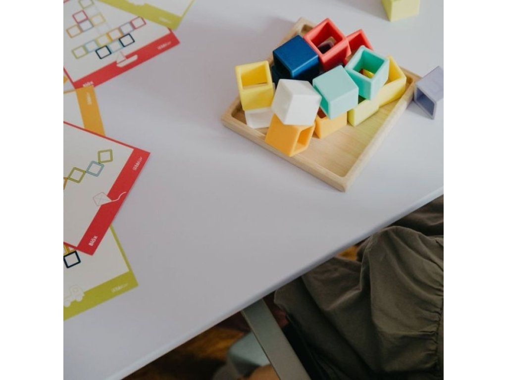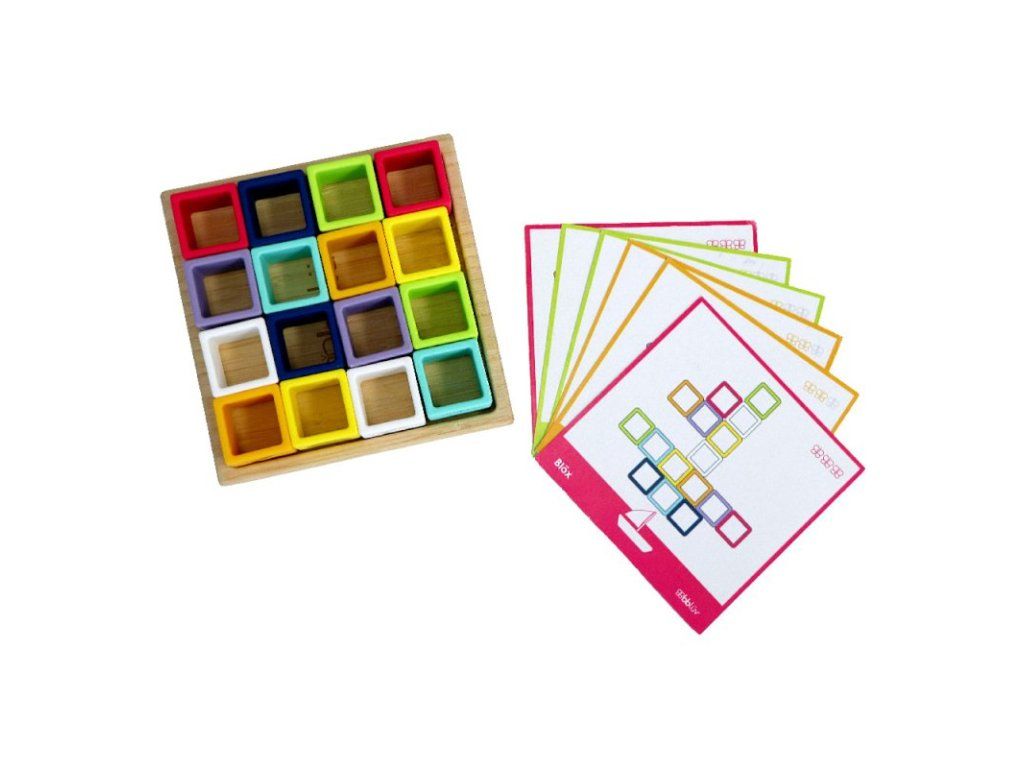 - skladá sa z 1 základne, 16 silikónových kociek a 6 obojstranných kariet
