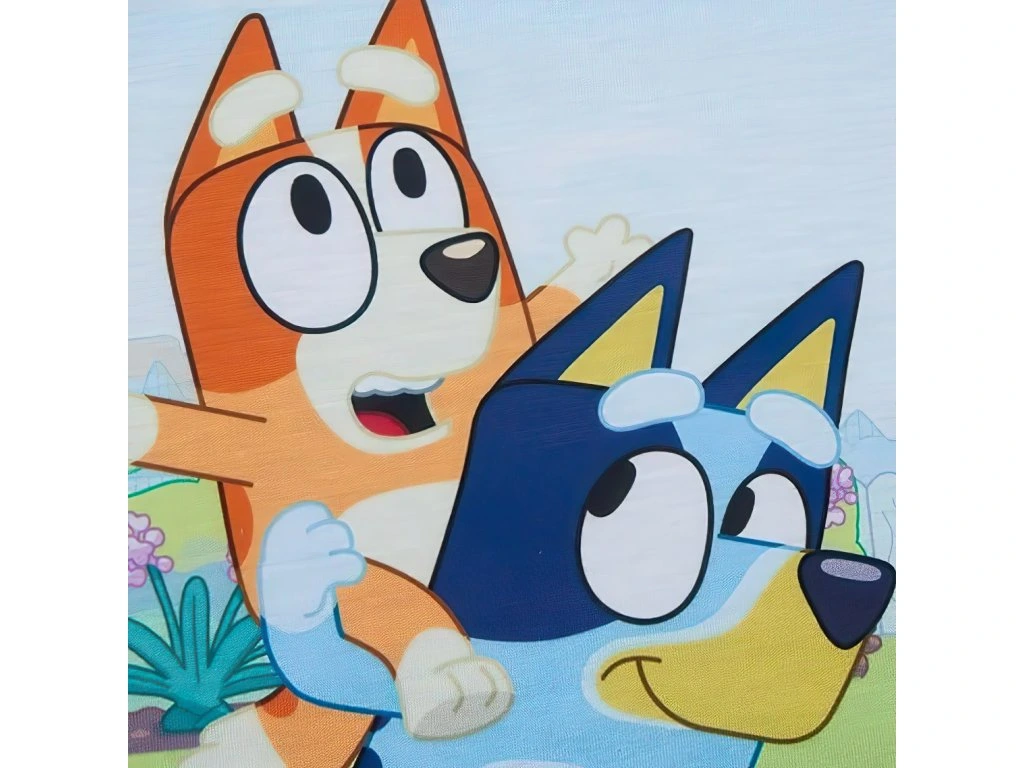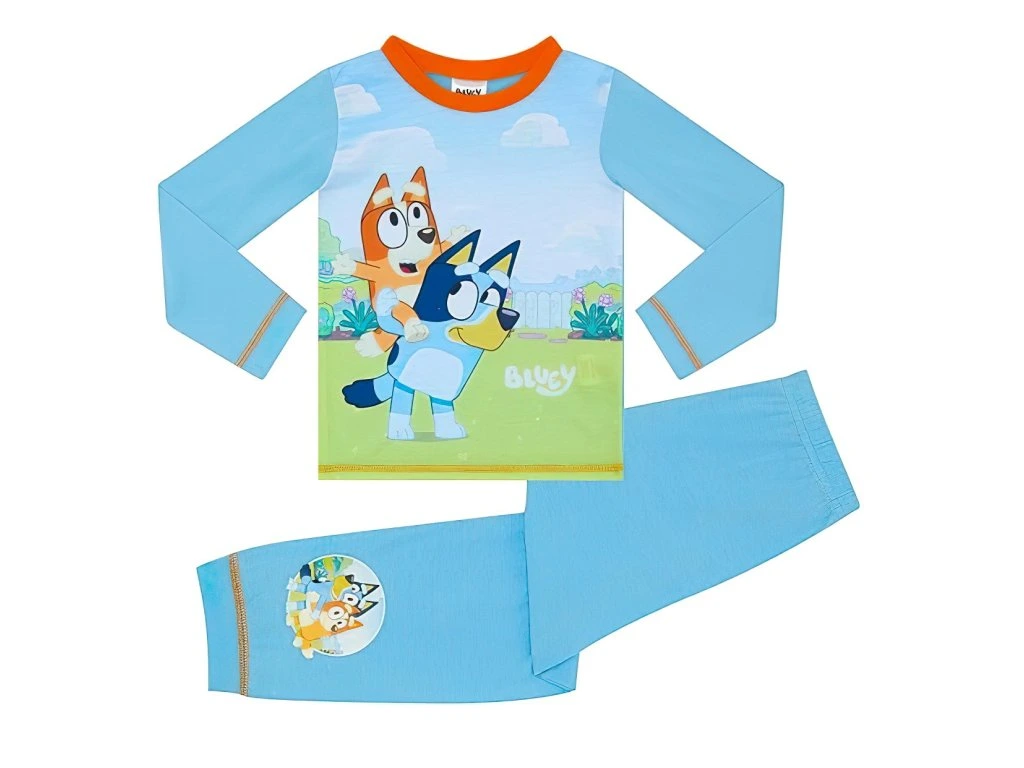 Veselé detské pyžamo s motívom obľúbeného animovaného seriálu Bluey poteší každého malého fanúšika tejto modrej psej slečny. Vrchný diel s dlhým rukávom zdobí farebná potlač postavičiek Bluey a jej sestry Bingo, vďaka čomu si deti ľahko obľúbia večerné obliekanie do pyžama.