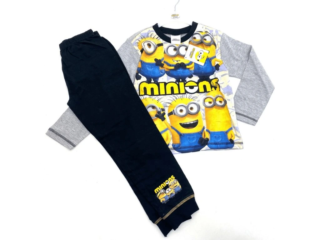 Detské pyžamo s motívom obľúbených Mimoňov prináša nielen radosť, ale aj pohodlie, ktoré malí fanúšikovia zbožňujú. Pyžamo sa skladá z dlhého trička a nohavíc, ktoré spolu tvoria štýlový a zároveň praktický komplet na každodenné spanie alebo odpočinok. Horný diel zaujme hravým potlačou usmiatych Mimoňov, ktorí oživujú celé pyžamo svojimi jasnými farbami a rozkošným výrazom. V kombinácii s nápisom „Minions“ dodáva tričko šmrnc a okamžite upúta detskú pozornosť.