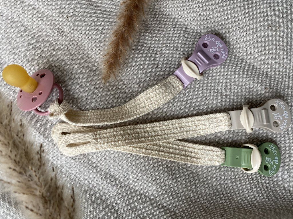 > Vhodné najmä pre cumlíky s krúžkom, ale možno ich pripevniť aj na cumlíky bez krúžku.
