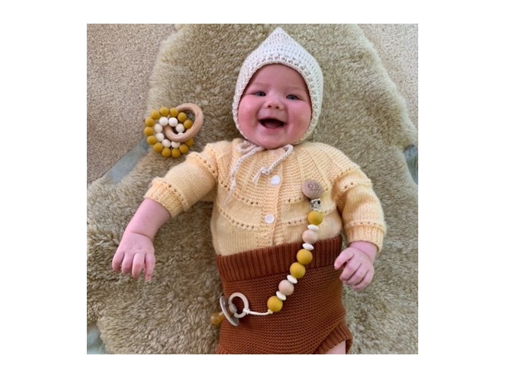 Výrobky spoločnosti O. B. Designs sú vyrobené podľa najvyšších štandardov, avšak pri nesprávnom použití a poničení môžu predstavovať nebezpečenstvo udusenia. Pred každým použitím ich skontrolujte a pri prvých známkach opotrebenia vyhoďte. Výrobky nijako neupravujte a vždy ich používajte pod dohľadom dospelej osoby. Retiazku s klipom uchycujte iba k odevu dieťaťa.