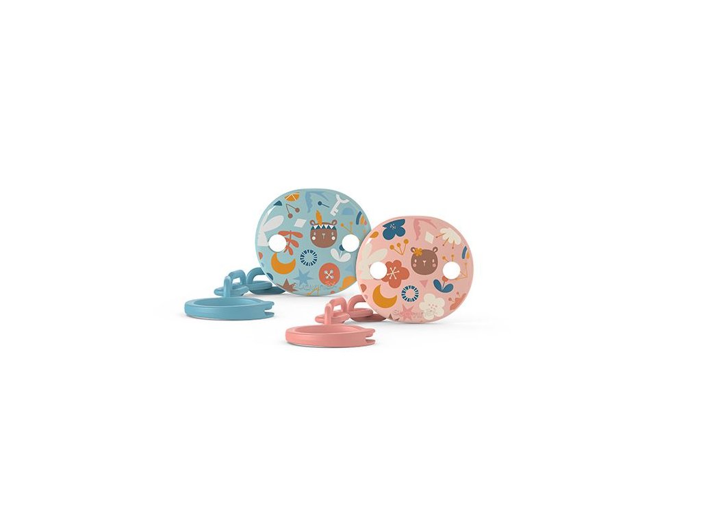 Okrúhle klipy možno veľmi dobre kombinovať s radou cumkíkov Suavinex Prints a dojčenskými fľašami tej istej série.