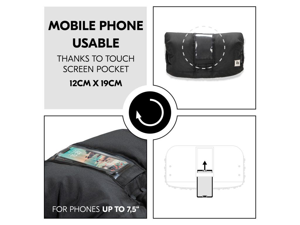 RUKY V TEPLE Aj V MRAZIVOM POČASÍ // Rukávnik udrží vaše ruky v teple bez straty kontaktu s kočíkom. Vodoodolný materiál chráni pred vetrom.