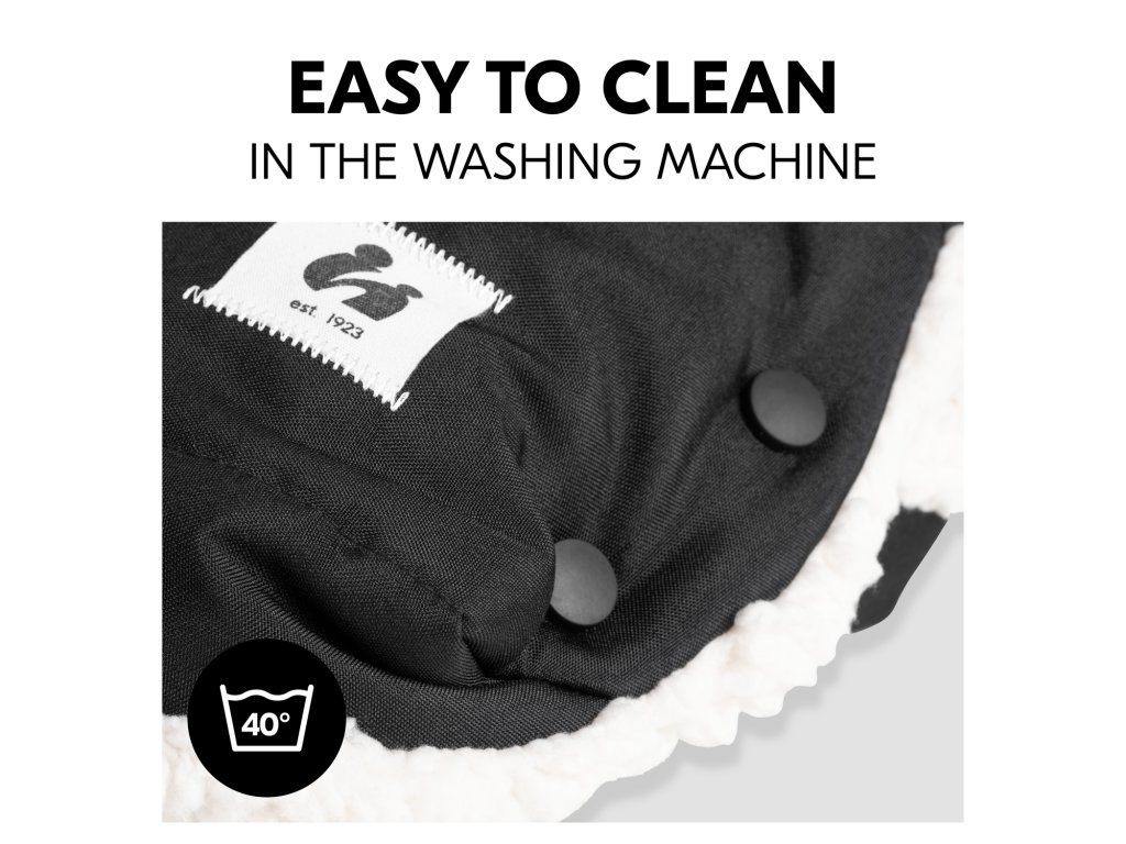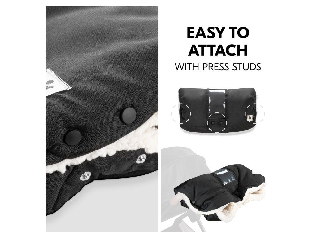 ĽAHKÉ NASADENIE // Rukávnik sa veľmi ľahko pripevní na rukoväť kočíka pomocou karabín.