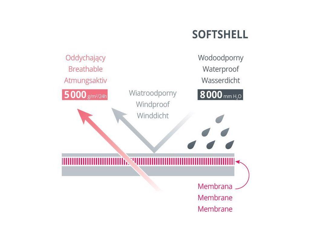 - Softshell je funkčný materiál ktorý zaisťuje priedušnosť a vodeodolnosť. Skladá sa z troch vrstiev.