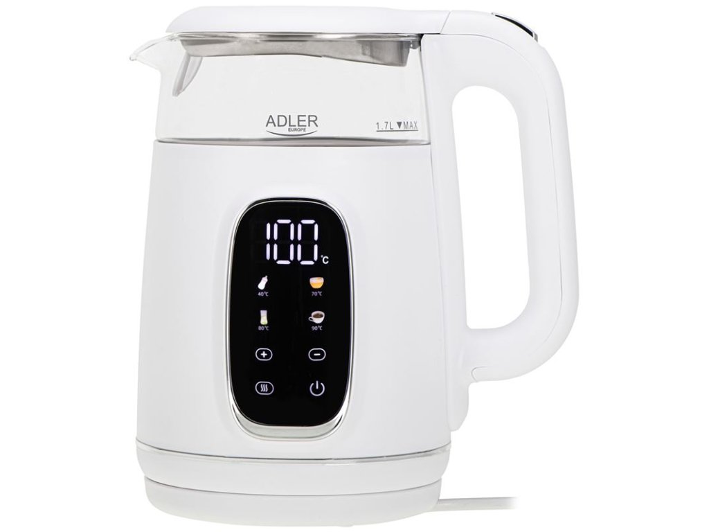 Rýchlovarná kanvica Adler AD1305 je produkt navrhnutý tak, aby pozdvihol zážitok z prípravy čaju, kávy a dojčenskej výživy so zmesou elegancie, funkčnosti a komplexných možností teplotných úrovní. Táto moderná a sofistikovaná kanvica je precízne vyrobená tak, aby vyhovovala potrebám náročných zákazníkov. Ponúka presné ovládanie teploty, intuitívny LED displej a elegantný moderný dizajn so skleneným interiérom pre zvýšenú čistotu a estetiku. Navyše, 2-hodinová funkcia udržiavania teploty zaistí, že budete mať vždy teplú vodu na ďalšiu šálku. Adler AD1305 je kombináciou štýlu, funkčnosti a inovácie, vďaka ktorej bude každý nápoj chutiť ešte lepšie!Hlavné výhody:- Kapacita: Maximum: 1,7 l - dosť na niekoľko šálok čaju alebo kávy. Minimum: 0,5 l - ideálne pre menšie množstvá.- Päť predprogramovaných teplotných nastavení: 40, 70, 80, 90 a 100°C.- Manuálne nastavenie teploty v rozsahu 40-100°C.- Funkcia udržiavania teploty po dobu 2 hodín.- Dotykový panel a LED displej.- Intuitívne ovládanie.- Farebný displej zobrazujúci aktuálnu teplotu.- Ploché vykurovacie teleso z nehrdzavejúcej ocele: Zaisťuje rýchle a rovnomerné varenie vody.- Filter, ktorý zastavuje usadeniny vápnika: Udržuje vodu čistú a nápoje chutné.- Ochrana proti vareniu bez vody.- Automatické vypnutie po zovretí vody.- Indikátor hladiny vody: Ľahko čitateľný vďaka stupnici.- Základňa otočná o 360°: Jednoduché zdvihnutie a umiestnenie kanvice.- Priestor pre navinutie napájacieho kábla: Uľahčuje skladovanie.- Zvukový signál: Informuje o spustení a varení vody.- Štýlový dizajn: Plastové telo so skleneným vnútrom.- Maximálny výkon: 2200 W - rýchle uvarenie vody.Charakteristika a technické údaje: Sklenená rýchlovarná kanvica Maximálny objem: 1,7 L Minimálny objem: 0,5 L Dotykový panel Farebný LCD displej Plastové telo so skleneným vnútrom Päť prednastavených teplôt: -40 °C – voda na dojčenskú výživu -70 °C – biely čaj -80 °C – čínske zelené čaje -90 °C – červený čaj a niektoré druhy kávy -100 °C – čierny čaj a Oolong Manuálne nastavenie teploty: 40–100 °C Funkcia udržiavania teploty: 40–100 °C Funkcia udržiavania teploty po dobu 2 hodín Vysokokvalitné ploché nerezové výhrevné teleso Automatická ochrana proti prevádzke bez vody Zvukový signál pri zapnutí a po zovretí vody Filter na usadeniny vodného kameňa Indikátor vodnej hladiny so stupnicou Automatické vypnutie Otočná základňa 360° Kompaktná základňa s úložným priestorom na kábel Napájanie: 220–240 V, 50/60 Hz Dĺžka napájacieho kábla: 70 cm Výkon: nom. 1850 W, max. 2200 W Rozmery produktu: 25,0 × 21,0 × 15,5 cm Typ zástrčky: E/FAdler Europe Group ponúka kvalitné výrobky, ktoré oceňujú milióny zákazníkov v Európe, za prijateľnú cenu. Značka začala svoju činnosť na poľskom trhu od roku 2002, odkiaľ sa postupne rozšírila do celej Európy. ,,Už 27 rokov sa riadime myšlienkou poskytovať vysoko kvalitné vybavenie čo najväčšiemu počtu zákazníkov. Dôkladným pochopením potrieb domácností sme vytvorili viac ako 800 produktov, ktoré doteraz ocenili v 35 krajinách po celom svete. Zákazníci si vyberajú naše výrobky pre svoje pohodlie, atraktívny vzhľad a dobrý pomer cena / kvalita. Sledujeme meniace sa trendy na trhu, aby sme technicky a vizuálne uspokojili očakávania našich zákazníkov.‘‘Dodatočné parametre