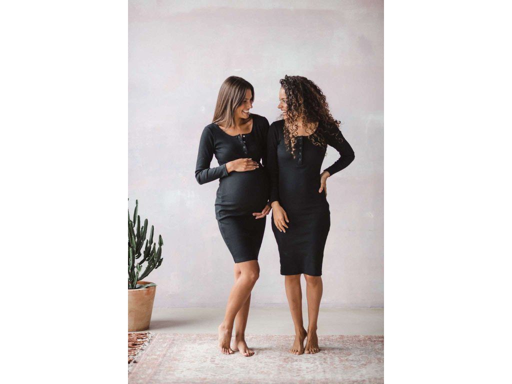 Tehotenské a dojčiace šaty rebrované Tummy milk & love čierna, XL - 52764