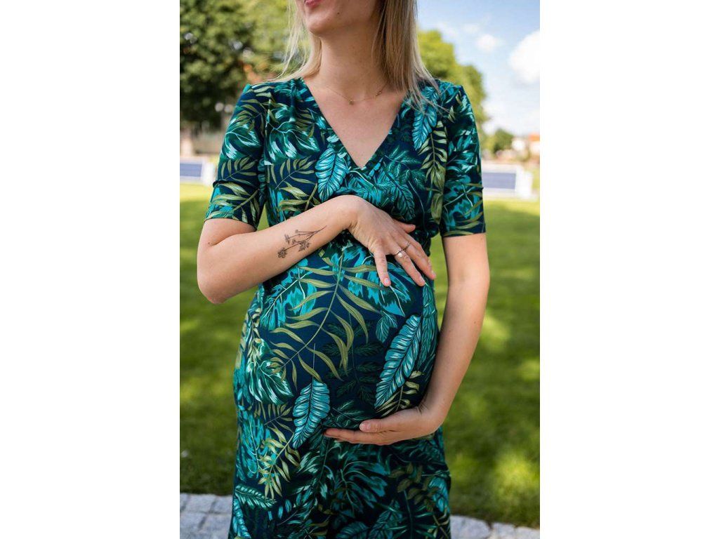 Tehotenské a dojčiace šaty Two Ways LONG milk & love. Tehotenské a dojčiace šaty Two Ways Long sú šaty, ktoré sa prispôsobia meniacim sa tvarom postavy v tehotenstve aj po pôrode. Môžete ich nosiť s výstrihom vpredu - potom je možné použiť aj ako dojčiace šaty, alebo s výstrihom na chrbte. Po dokončení dojčenia sa dajú stále používať ako „obyčajné“ šaty. Dlhé šaty Two Ways Long sa dajú štylizovať na rôzne príležitosti - hodia sa predovšetkým na väčšie rodinné akcie, napríklad ako šaty na krst. Skvele budú vyzerať aj v ležérnom štýle s teniskami alebo balerínami. Dlhé elegantné tehotenské šaty z ľahkej viskózy s krásnou tropickou potlačou. Šaty sú ušité z najkvalitnejšej priedušnej látky, ktoré prešli prísnymi testami Oeko-Tex Standard 100. Vďaka nim je oblečenie mäkké a príjemné na dotyk pre mamičku aj dieťa. Pri výbere veľkosti tehotenských a dojčiacich šiat Two Ways Long sa riaďte veľkosťou, ktorú aktuálne nosíte. Pokiaľ váhate medzi dvoma veľkosťami - zvoľte tú menšiu. Rozmerová tabuľka je posledná fotografia. Zloženie: 92% viskóza, 8% elastan.Dodatočné parametre