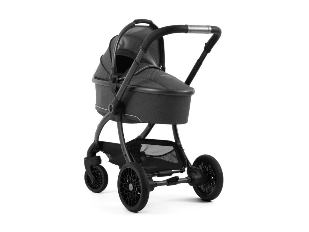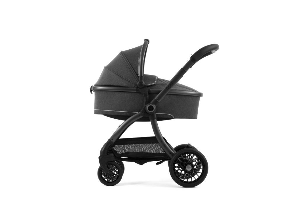 Matný šedý podvozok kočíka Aston Martin egg3® Classic Grey dopĺňa elegantne prepracovaný, strieborný ryhovaný stredový kĺb, inšpirovaný ikonickými otočnými ovládacími prvkami interiérov vozidiel Aston Martin. Tento detail dodáva kočíku nádych autentickej automobilovej precíznosti. Kolesá s voštinovou štruktúrou, inšpirované modelmi Aston Martin Valour a Victor, sa dokonale snúbia s technológiou Tru-Ride®, ktorá prináša plynulú, tichú a sebaistú jazdu na každom povrchu. Celkové odpruženie, voliteľne otočné či aretovateľné predné kolesá a veľkorysý úložný košík zaisťujú praktickosť a komfort pre každodenné použitie.