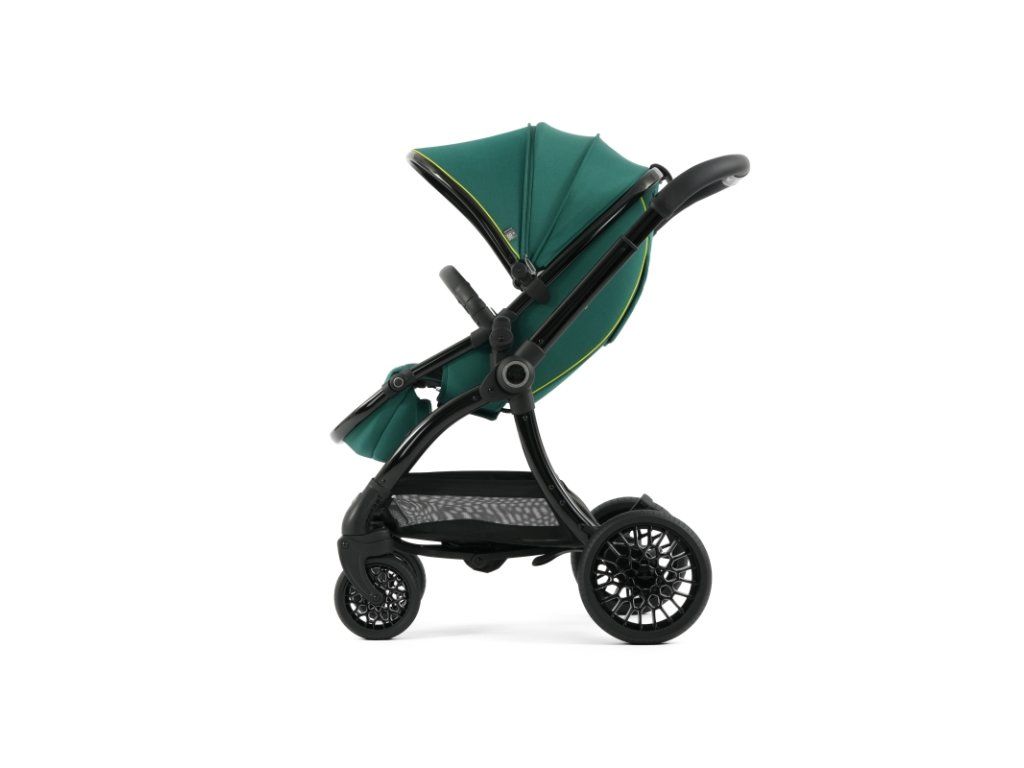 Lesklý čierny rám kočíka Aston Martin egg3® Performance Green dopĺňa elegantne prepracovaný, strieborný ryhovaný stredový kĺb, inšpirovaný ikonickými otočnými ovládacími prvkami interiérov vozidiel Aston Martin. Tento detail dodáva kočíku nádych autentickej automobilovej precíznosti. Kolesá s voštinovou štruktúrou, inšpirované modelmi Aston Martin Valour a Victor, sa dokonale snúbia s technológiou Tru-Ride®, ktorá prináša plynulú, tichú a sebaistú jazdu na každom povrchu. Celkové odpruženie, voliteľne otočné či aretovateľné predné kolesá a veľkorysý úložný košík zaisťujú praktickosť a komfort pre každodenné použitie.