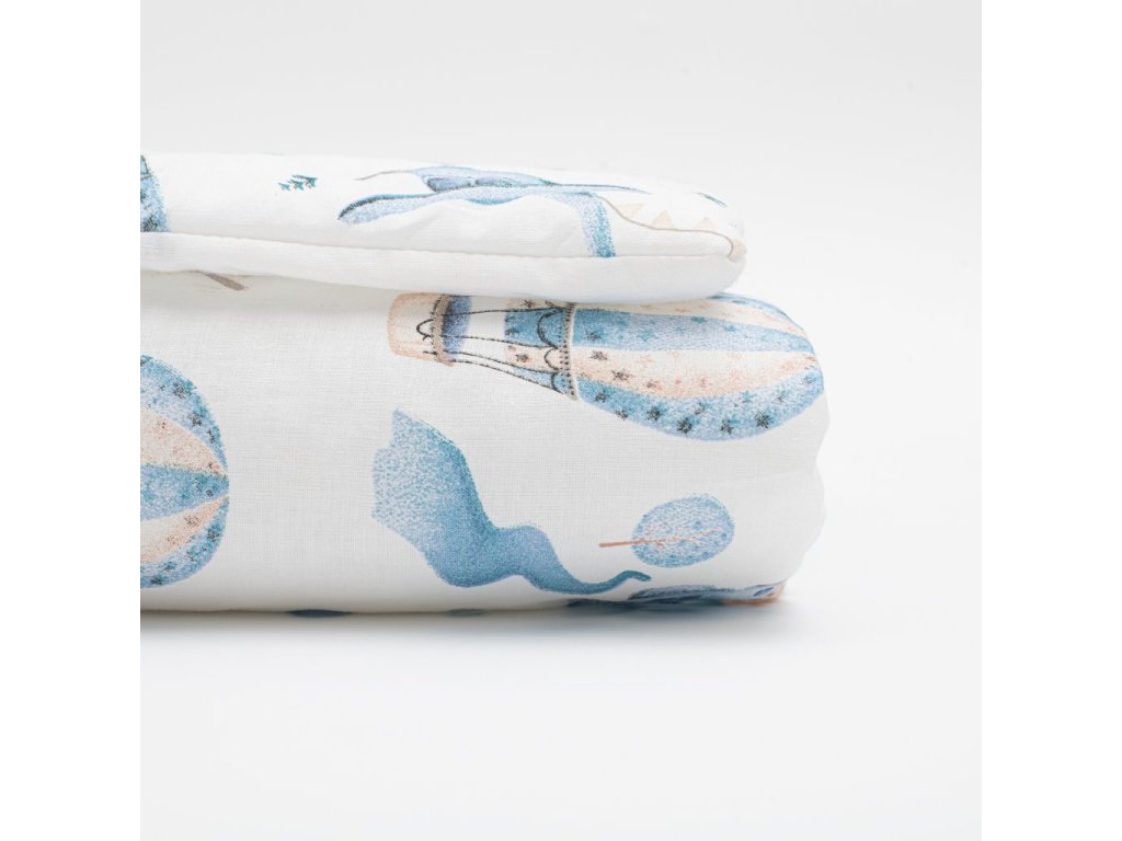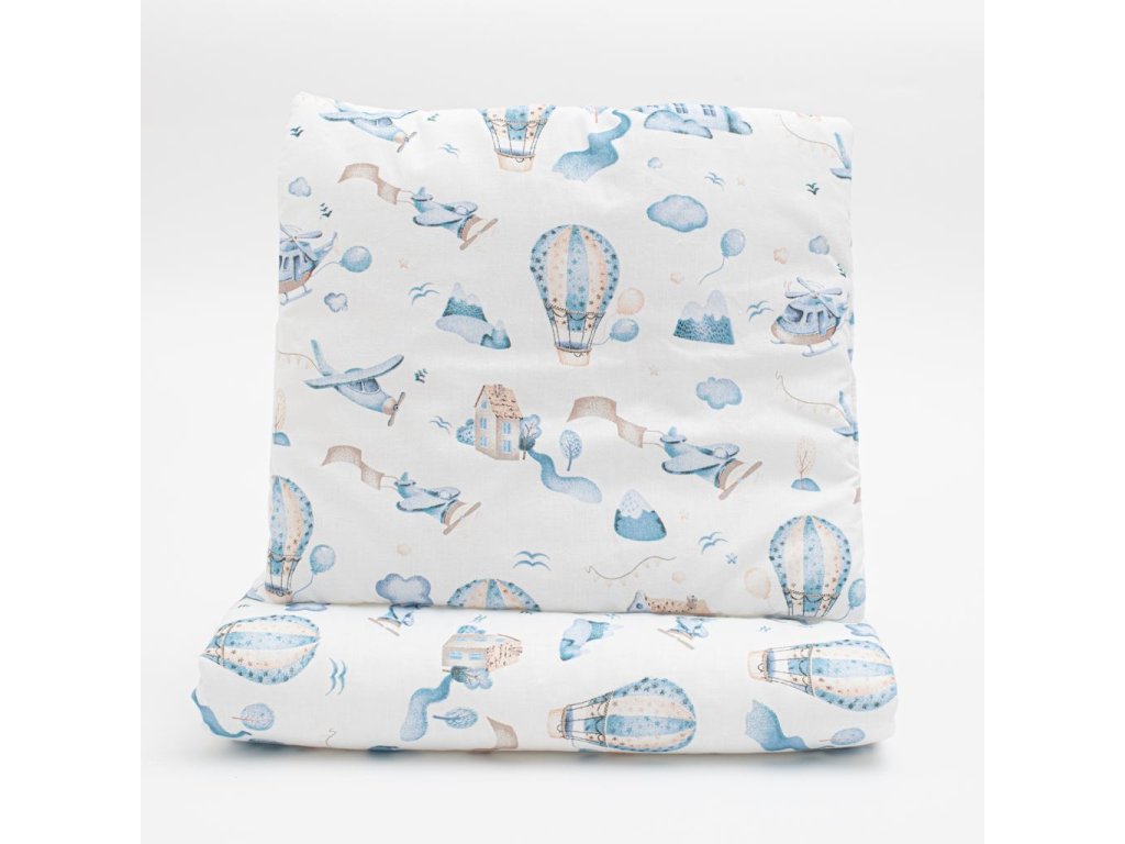 Nádherný bavlnený set do kočíka New Baby Romance. Set obsahuje vankúšik a perinku s potlačou rozprávkového dobrodružstva v oblakoch. Všetko je vyplnené antialergickým vláknom. Set je ušitý z vysoko kvalitnej bavlny. Bavlnený set luxusne a jemne pohladí a zahreje pokožku vášho bábätka. Rozmery: vankúš: cca 32x25 cm, perinka: cca 82x68 cm. Zloženie: povlak 100% bavlna, výplň 100% polyester.Tieto výrobky sú bezpečné, pretože:
