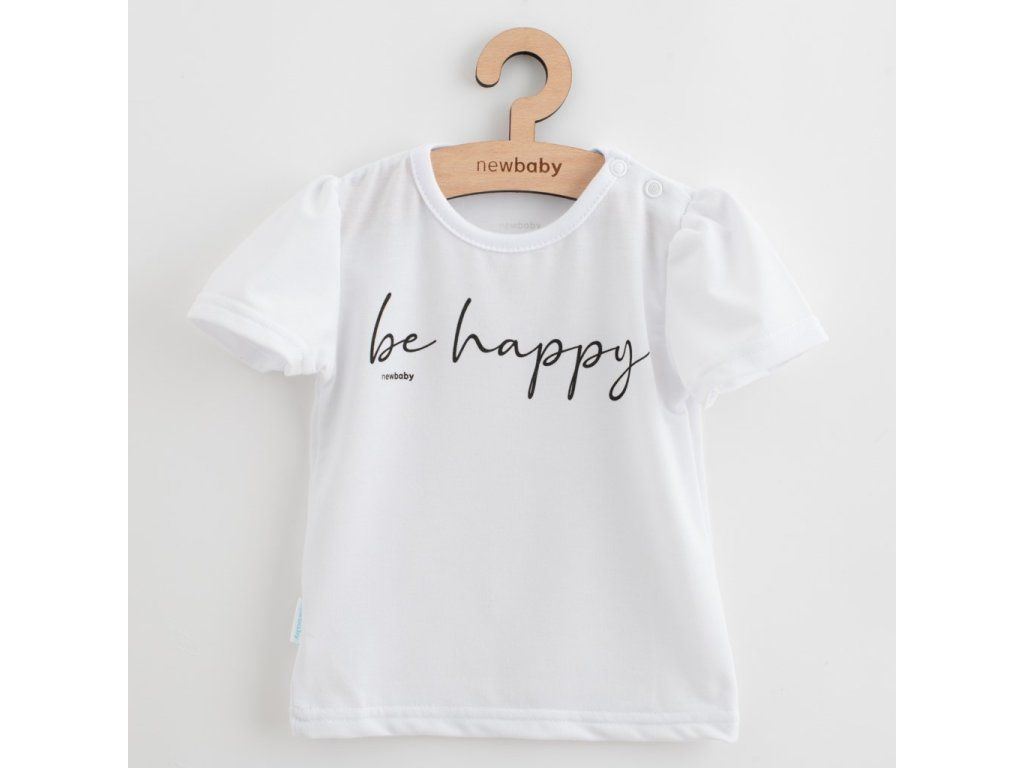 Krásna letná 2-dielna súpravička New Baby Be Happy pre bábätká. Pohodlná súpravička je vyrobená z veľmi príjemného, mäkkého a kvalitného materiálu, ktorý je vhodný pre bábätká. Obsahuje tričko a letné nohavice-záhradníčky. Bavlnené tričko s krátkym rukávom zdobí potlač s nápisom be happy. Jednoduché obliekanie cez hlavičku. Zapínanie na cvočky na ramienku. Letné nohavice so zaväzovaním na ramienkach sú celopotlačené kvetinami. Na nohavičkách majú širší pružný lem. V tejto súpravičke, ktorá je precízne a kvalitne ušitá sa bude bábätko cítiť veľmi príjemne. Zloženie: 100% bavlna.Dodatočné parametre