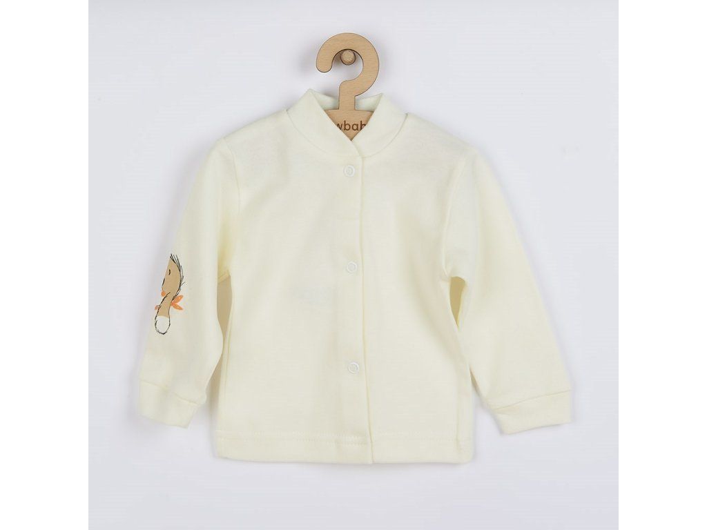 Bavlnená dojčenská súpravička, ktorá obsahuje dupačky a kabátik. Bavlnené dojčenské dupačky zdobí veselý obrázok na prednej strane. Dupačky sú veľmi pohodlné, krásne a majú zapínanie na ramienkach a medzi nožičkami na cvočky. Kabátik je jednofarebný s obrázkom na rukáve. Zloženie 100% bavlna. Obvod dupačiek okolo hrudníka cca 40 cm, celková dĺžka cca 49 cm, dĺžka od rozkroku cca 18 cm.Dodatočné parametre