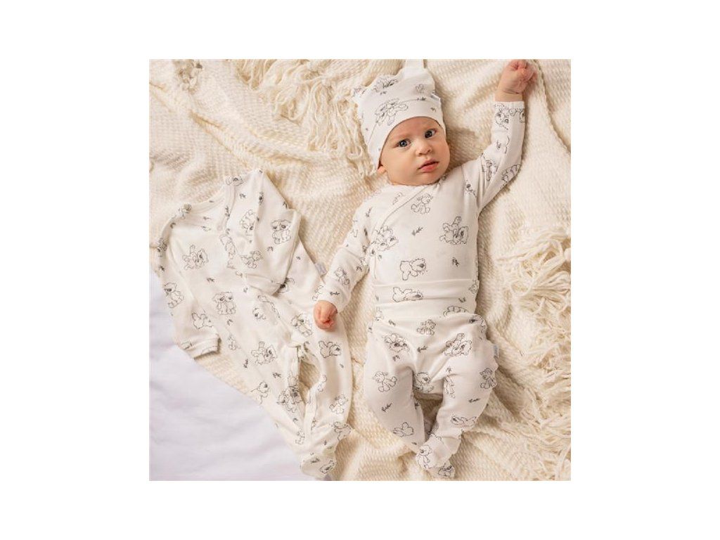 Roztomilá dojčenská 4-dielna súpravička Nicol Mackovia pre bábätká. Súpravička je vyrobená z veľmi príjemného mäkkého a kvalitného materiálu, ktorý je vhodný pre bábätká a je vhodná nielen do pôrodnice. Obsahuje celorozopínacie body s dlhým rukávom, overal, polodupačky a čiapočku. Celorozopínacie body a overal majú zapínanie na cvočky po celej dĺžke a medzi nožičkami. Čiapočka je krásne tvarovaná na ušká a dobre drží na hlavičke bábätka. Celá súpravička má nový dizajn s potlačou medvedíkov. V tejto súpravičke, ktorá je precízne a kvalitne ušitá sa bude bábätko cítiť veľmi príjemne. Je navrhnutá s ohľadom na potreby bábätka a je vhodná aj ako milý darček. Súpravička je v praktickej Eko krabičke. Zloženie: 100% bavlna.Dodatočné parametre