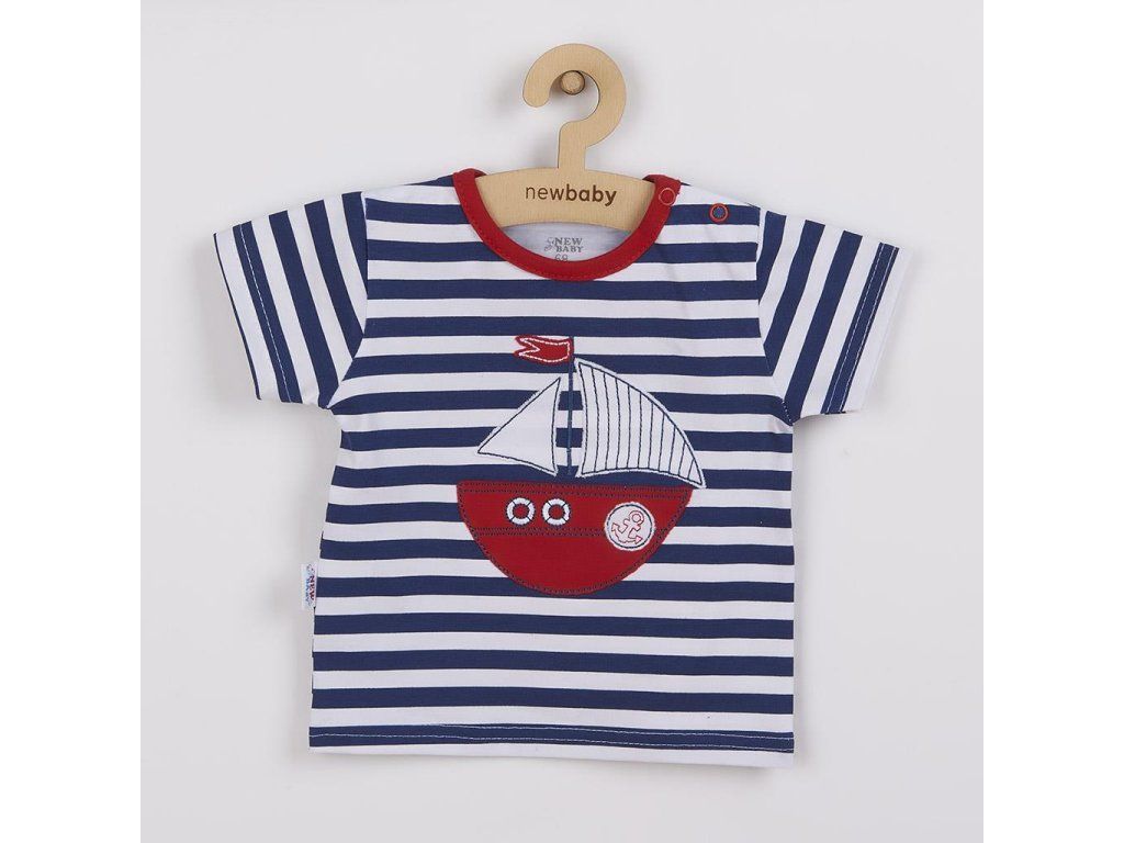2-dielna letná bavlnená súpravička New Baby Marine. Súpravička obsahuje tričko a kraťasky. Tričko s krátkym rukávom s farebným lemovaním okolo krčku je zdobené krásnou nášivkou lodičky a je celopotlačené modernými pruhmi. Nášivka je podlepená látkou proti poškriabaniu. Tričko má zapínanie na ramienku pre ľahké obliekanie. Pohodlné kraťasky sú jednofarebné s malým obrázkom kotvy. Zloženie 100% bavlna.Dodatočné parametre