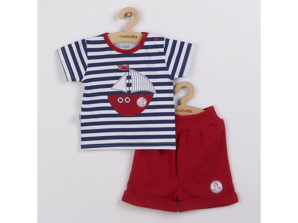 2-dielna letná bavlnená súpravička New Baby Marine. Súpravička obsahuje tričko a kraťasky. Tričko s krátkym rukávom s farebným lemovaním okolo krčku je zdobené krásnou nášivkou lodičky a je celopotlačené modernými pruhmi. Nášivka je podlepená látkou proti poškriabaniu. Tričko má zapínanie na ramienku pre ľahké obliekanie. Pohodlné kraťasky sú jednofarebné s malým obrázkom kotvy. Zloženie 100% bavlna.Dodatočné parametre