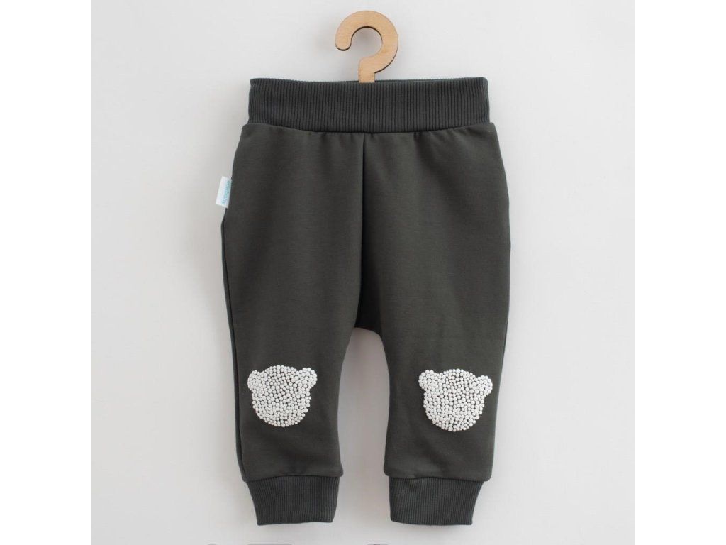 Štýlová 2-dielna dojčenská súpravička New Baby Brave bear. Súpravička sa skladá z trička a teplákov. Tričko s dlhým rukávom so zapínaním na cvočky na ramienku, je vyrobené s príjemnej teplákoviny. Je zdobené zaujímavým 3D obrázkom medvedíka. Tričko má v spodnej časti bavlnenú vsadku, ktorá dodáva šmrncovný vzhľad. Tepláčky s pružným lemom v páse a na nohavičkách sú vyrobené s pohodlnej teplákoviny. Na kolienkach je ABS potlač v tvare medvedíka. Ochráni tak kolienka dieťaťa pri lezení. Zloženie: 96% bavlna, 4% elastan.