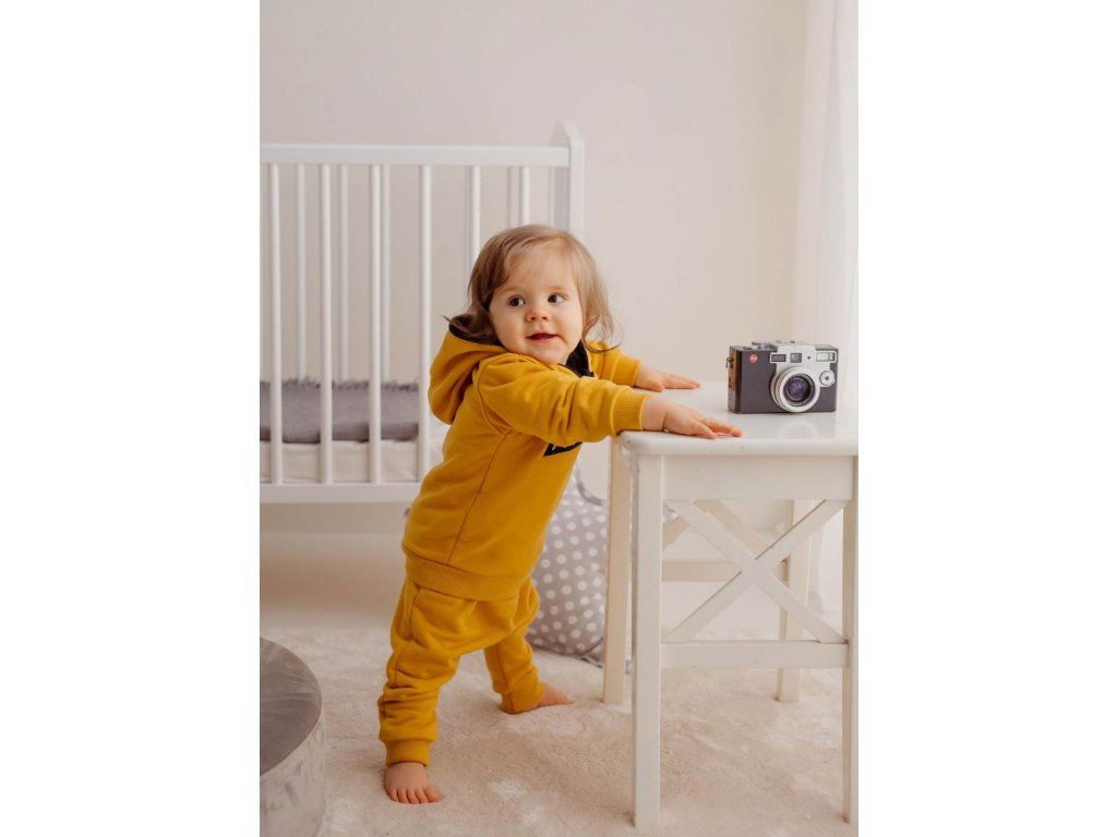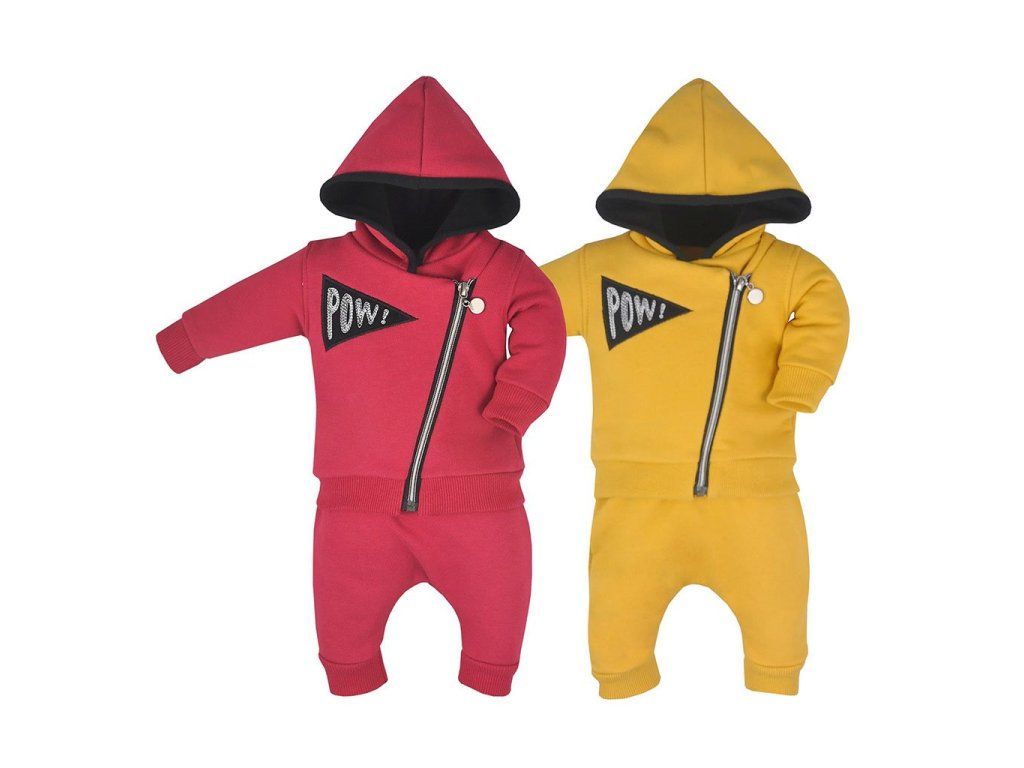 Originálna a štýlová 2-dielna súpravička Koala Pow. Súčasťou súpravičky sú tepláčky a mikinka s kapucňou. Mikinka má moderné bočné zapínanie na zips, krásnu farbu a kapucňu s bavlnenou podšívkou. Okolo ručičiek a v páse má široký lem. Tepláčky majú na nohavičkách široký lem a majú štýlový znížený sed čím dodávajú ten správny šmrc. Súpravičku skvele využijete nielen do kočíka, autosedačky, ale aj na prechádzky či ako pohodlné oblečenie na doma. Má všestranné využitie. Súpravička je vyrobená z veľmi príjemnučkého, mäkkého materiálu a je veľmi kvalitne a prezícne ušitá. Materiál: 96% bavlna, 4% elastan.Dodatočné parametre