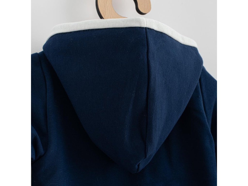 Roztomilá a štýlová 2-dielna súpravička New Baby Animals. Súčasťou súpravičky sú tepláčky a mikinka s kapucňou. Mikinka má moderné bočné zapínanie na zips, krásnu farbu s obrázkom a kapucňu s bavlnenou podšívkou. Okolo ručičiek a v páse má široký pružný lem. Tepláčky majú na nohavičkách širší pružný lem a v páse gumičku. Zdobené sú na zadočku obrázkom zvieratka. Súpravičku skvele využijete nielen do kočíka, autosedačky, ale aj na prechádzky či ako pohodlné oblečenie na doma. Má všestranné využitie. Súpravička je vyrobená z veľmi príjemného, mäkkého teplákového materiálu a je veľmi kvalitne a prezícne ušitá. Materiál: 98% bavlna, 2% elastan.Dodatočné parametre