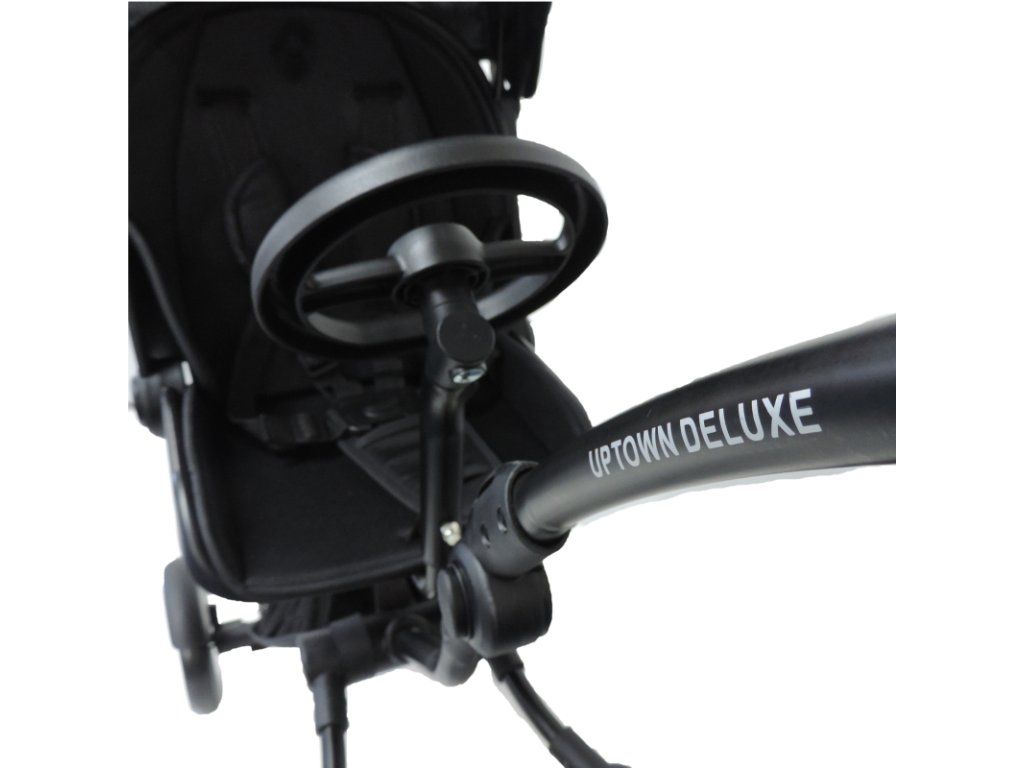 Pokiaľ pôjdete s kočíkom cez obrubníky alebo iné prekážky (schody atd.), môžete Uptown Rider DELUXE ľahko zdvihnúť (tu, prosím, nechajte svoje dieťa vystúpiť!) a v prípade potreby (napríklad pri ostrejších zatáčkach) môžete Uptown Rider DELUXE ľahko a bezpečne stabilizovať rukou na operadle.