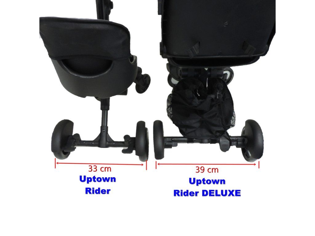 Upevnenie tohto prídavného rideru bolo prispôsobené jeho väčšiemu sedadlu v porovnaní s klasickým Uptown Rider. Máte tak väčšie pohodlie a priestor na nohy aj pri tlačení kočíka s týmto príslušenstvom, zatiaľ čo väčší súrodenec má voľný výhľad v smere jazdy.