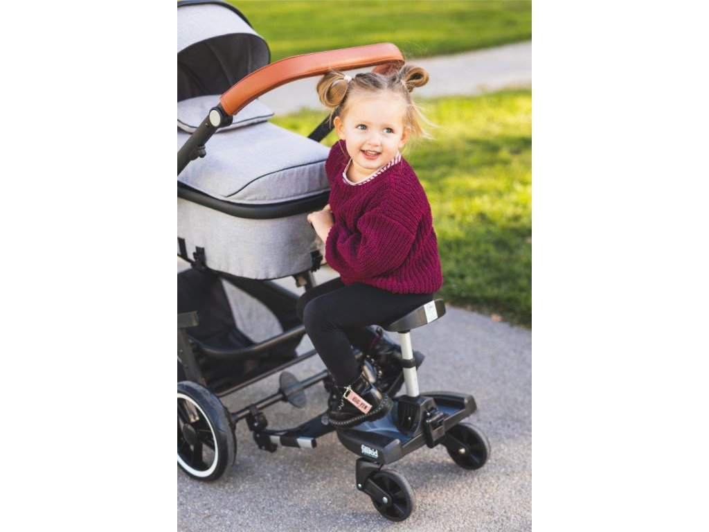 Pohodlné sedátko pre Filliboard. Na rodinnom výlete s bábätkom a starším súrodencom sa môžu nohy vášho staršieho dieťaťa rýchlo unaviť. Na Filliboarde môže optimálne odpočívať na kratšie vzdialenosti. Pre dlhšie cesty je prídavné sedadlo Filliboard od Fillikid perfektným doplnkom: skladajúci sa z pohodlného sedla a bezpečnostnej rukoväte, za ktorou sa drží, je trojito nastaviteľné a možno ho ľahko pripevniť k stúpadlu bez akýchkoľvek pomocných nástrojov. S maximálnou nosnosťou 20 kg je sedadlo vhodné pre deti vo veku od dvoch do piatich rokov. Váš miláčik môže byť bezstarostný na každej prechádzke s vami a bábätkom.