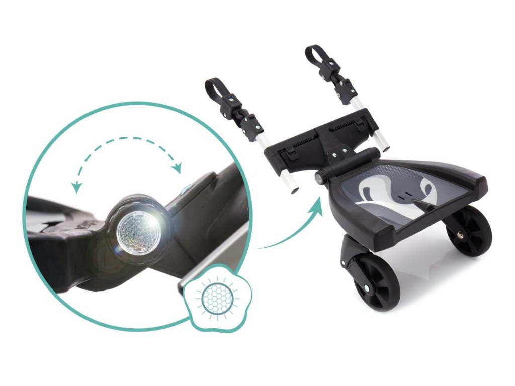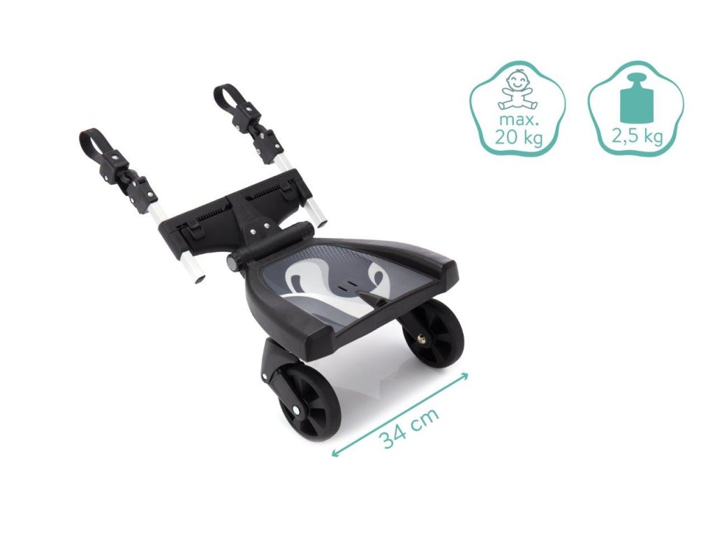 Akonáhle príde nové bábätko, starší súrodenci sú nadšení. Je teda pochopiteľné, že chcú byť pri tom, keď idú na prechádzku a nový prírastok do rodiny všetkým hrdo predstavia. Pokiaľ sa starší súrodenec počas vychádzky trochu unaví a cíti potrebu si oddýchnuť, je Filliboard 180 ° od Fillikid ideálnym riešením. Vďaka univerzálnemu nástavcu otočnému o 180 ° je vhodný takmer na všetky kočíky. Možno ho ľahko pripevniť na priečne aj zvislé vzpery bez akýchkoľvek pomocných nástrojov. Stúpadlo má maximálnu nosnosť 20 kg.