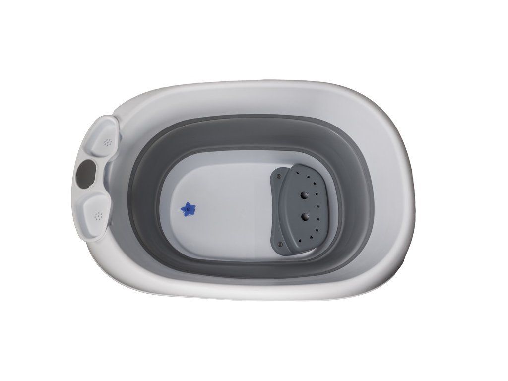 Skladacia vanička s objemom 100 litrov je ideálna pokiaľ potrebujete vaničku rýchlo zbaliť a ušetriť tak miesto v kúpeľni. Skladaciu vaničku môžete pre svoje dieťa používať už od narodenia až dovtedy, kým na ňu vaše dieťa nebude príliš veľké. Súčasťou je aj stolička s prísavkami, ideálna pre väčšie deti, aby sa mohli pohodlne posadiť. Stoličku je možné používať až od chvíle, keď sa vaše dieťa dokáže posadiť bez pomoci.