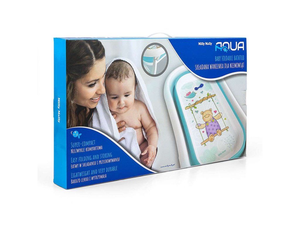 Detská skladacia vanička Milly Mally AQUA je praktickým a univerzálnym riešením do každej domácnosti bez ohľadu na veľkosť kúpeľne. Stačí zložiť nohy a potom silikónové dno. Je mimoriadne kompaktná a pohodlná. Produkt je kombináciou funkčnosti a moderného designu. Je ľahká, odolná a vďaka protišmykovým skladacím nohám predovšetkým stabilná. Boky vaničky sú vyrobené z mäkkého a na dotyk veľmi príjemného plastu a sú pre dieťa úplne bezpečné, nespôsobujú alergie a ľahko sa udržujú v čistote. Silikónové dno vaničky je vybavené dômyselnou termo citlivou zátkou, ktorá mení farbu podľa teploty vody (po prekročení 37°C sa farba zátky zmení). Pri teplote vody nad 41°C je zátka úplne priehľadná. Nezabudnite pred kúpaním vždy skontrolovať teplotu vody.CHARAKTERISTIKA:
