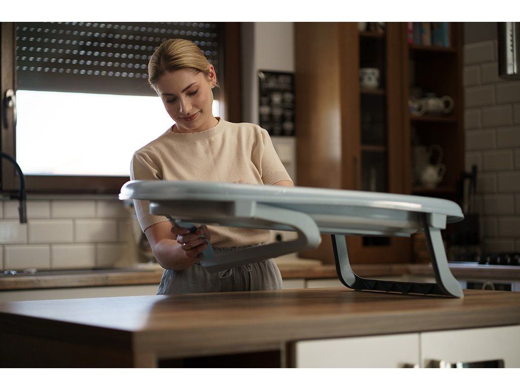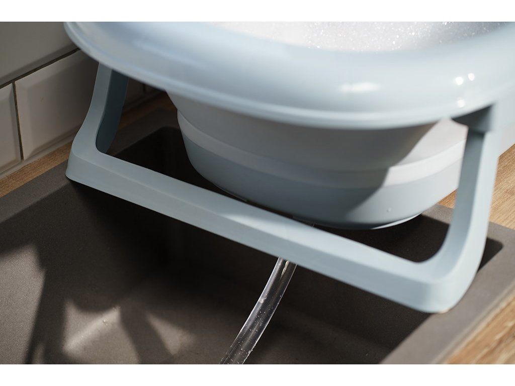 Vanička je vybavená výpustným ventilom a pásikovým teplomerom, čo výrazne zvyšuje komfort a bezpečnosť pri každodennom používaní. Dá sa jednoducho zložiť na výšku len 10 cm, pričom plastové nožičky sa sklopia priamo pod vaničku – vďaka čomu zaberá minimum miesta a je ideálna na skladovanie aj v menších priestoroch.