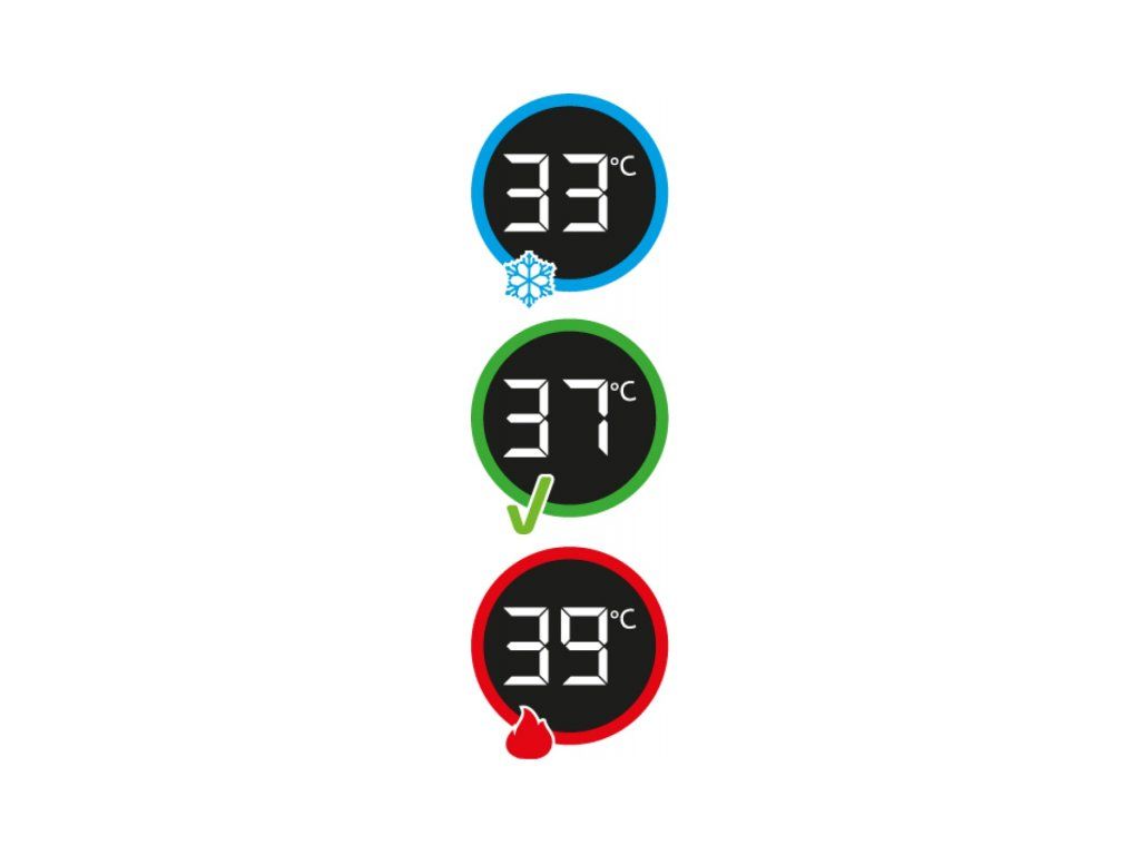 - integrovaný teplomer HighSense + farebný indikátor bezpečnej teploty