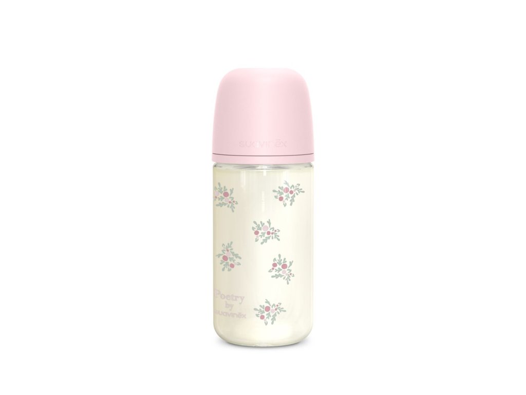 SUAVINEX | Fľaša sklo POETRY 240 ml fyziologická SX PRO +3 MF - ružová