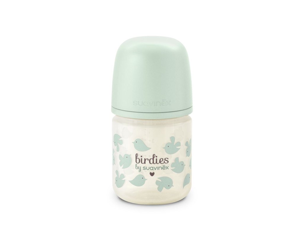 SUAVINEX | Fľaša SKLO BIRDIES 120 ml fyziologická SX PRO +0 SF - zelená