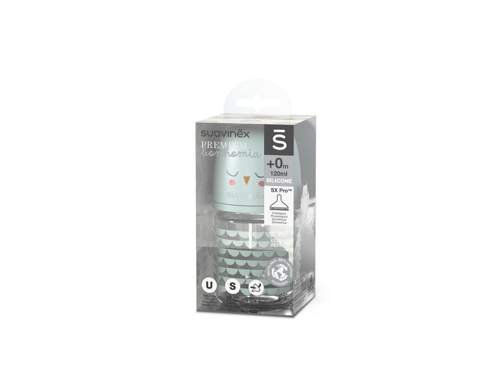 SUAVINEX | Fľaša sklo BONHOMIA 120 ml fyziologická SX PRO +0 SF - zelená