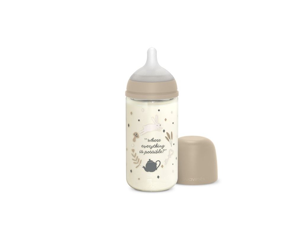 SUAVINEX | Fľaša sklo WONDERLAND 240 ml fyziologická SX PRO +3 MF - KRÉMOVÁ