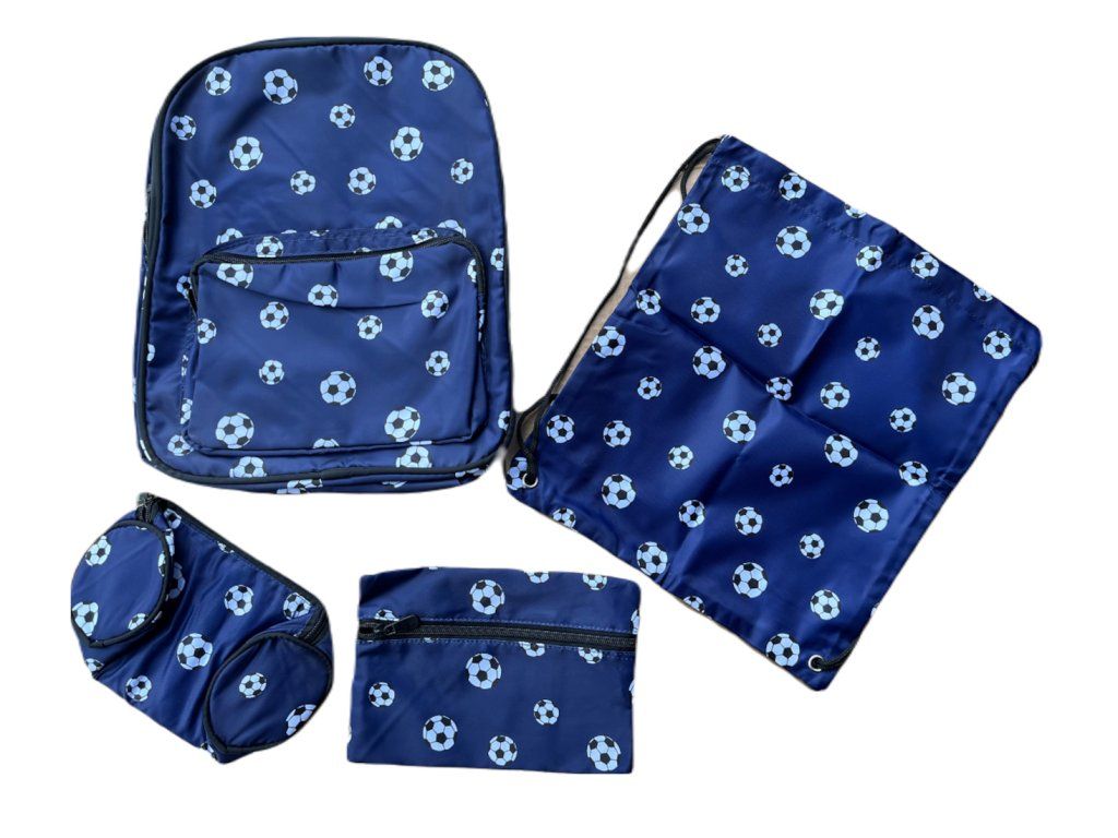 Sada pre školákov obsahujúci batoh, peňaženku, puzdro a batoh v štýle vaku, je ideálnou voľbou pre každého školáka, ktorý má rád futbal. Na batohu je atraktívny futbalový motív, ktorý zaujme a dodá štýl. Batoh je vhodný na bežné nosenie školských potrieb ako sú knihy, zošity a písacie potreby i na športové využitie na krúžky a rôzne výlety. Puzdro ponúka dostatok priestoru na uloženie ceruziek, fixiek, gúm a ďalších malých školských pomôcok. Vak na chrbát je ľahký a praktický pre športové oblečenie alebo obuv, vhodný na telesnú výchovu alebo voľnočasové aktivity. Batoh obsahuje dve priehradky - veľkú a menšiu pre drobné predmety. Obe sú ľahko zapínateľné na zips.