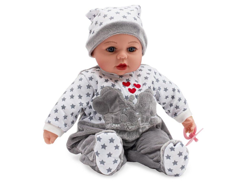 Krásna detská bábika PlayTo. Skvelá hračka pre každé dievčatko, ktoré bude mať svoje hovoriace bábätko. Hlava, ruky a nohy sú vyrobené z gumy, telíčko potom z mäkkého materiálu, vďaka čomu sa môže dieťa k bábike krásne pritúliť. Bábika má milú tváričku, ktorá vyzerá ako naozajstné bábätko.Bábika má cumlík.Získa si srdce každého dievčatka ružovými perami, modrými kukadlami, maľovaným obočím a realisticky vyzerajúcimi riasami. Má roztomilé oblečenie a čiapočku. Oblečenie je možné vyzliecť a vyprať. Dĺžka bábiky je 46 cm a je zabalená vo farebnej krabici a je vhodná aj ako milý darček. Bábika je dlhá 46 cm. Bábika má modul, ktorý hovorí 4 jazykmi: poľsky, česky, slovensky a maďarsky. Modul po stlačení prehráva 5 piesní a hovorí 14 slovenských viet.