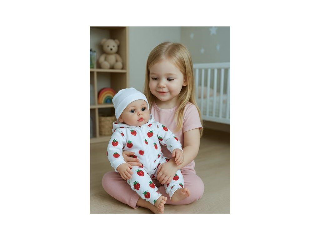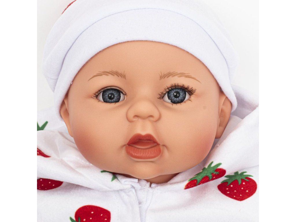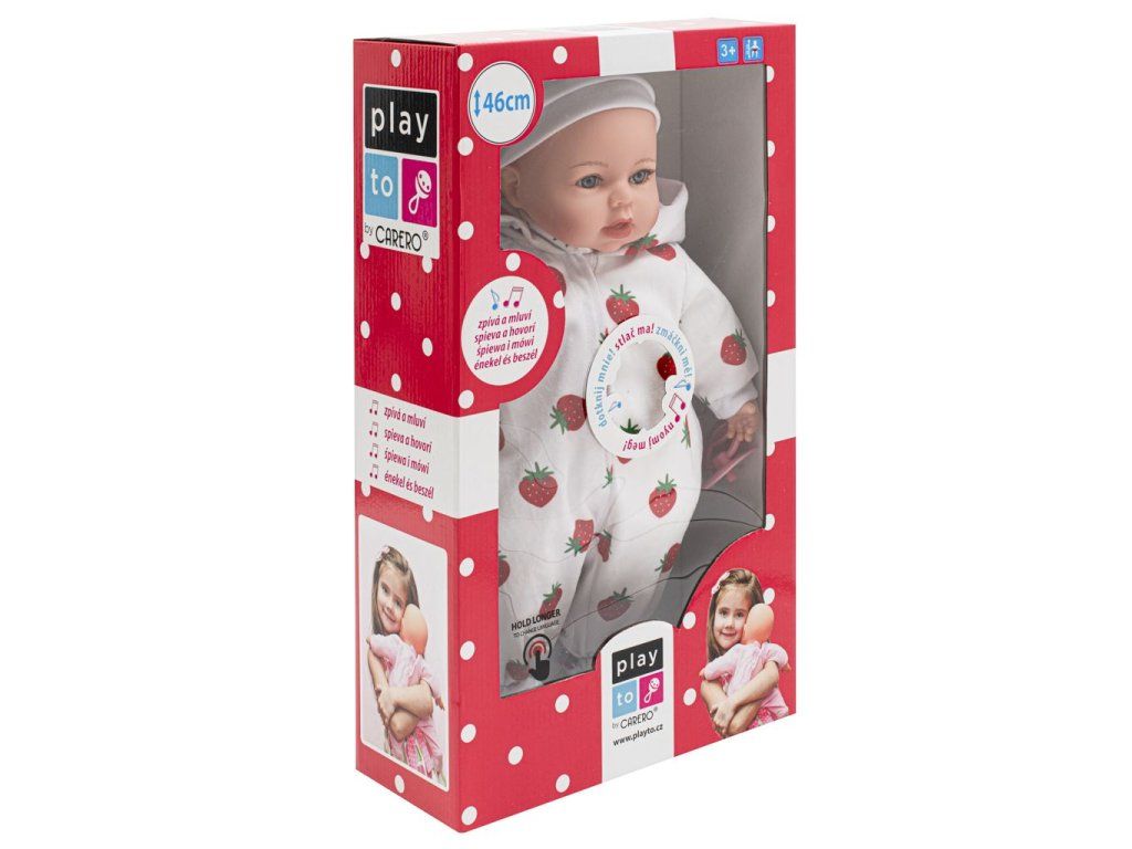 Krásna detská bábika PlayTo. Skvelá hračka pre každé dievčatko, ktoré bude mať svoje hovoriace bábätko. Hlava, ruky a nohy sú vyrobené z gumy, telíčko potom z mäkkého materiálu, vďaka čomu sa môže dieťa k bábike krásne pritúliť. Bábika má milú tváričku, ktorá vyzerá ako naozajstné bábätko.Bábika má cumlík.Získa si srdce každého dievčatka ružovými perami, modrými kukadlami, maľovaným obočím a realisticky vyzerajúcimi riasami. Má roztomilé oblečenie a čiapočku. Oblečenie je možné vyzliecť a vyprať. Dĺžka bábiky je 46 cm a je zabalená vo farebnej krabici a je vhodná aj ako milý darček. Bábika je dlhá 46 cm. Bábika má modul, ktorý hovorí 4 jazykmi: poľsky, česky, slovensky a maďarsky. Modul po stlačení prehráva 5 piesní a hovorí 14 slovenských viet.