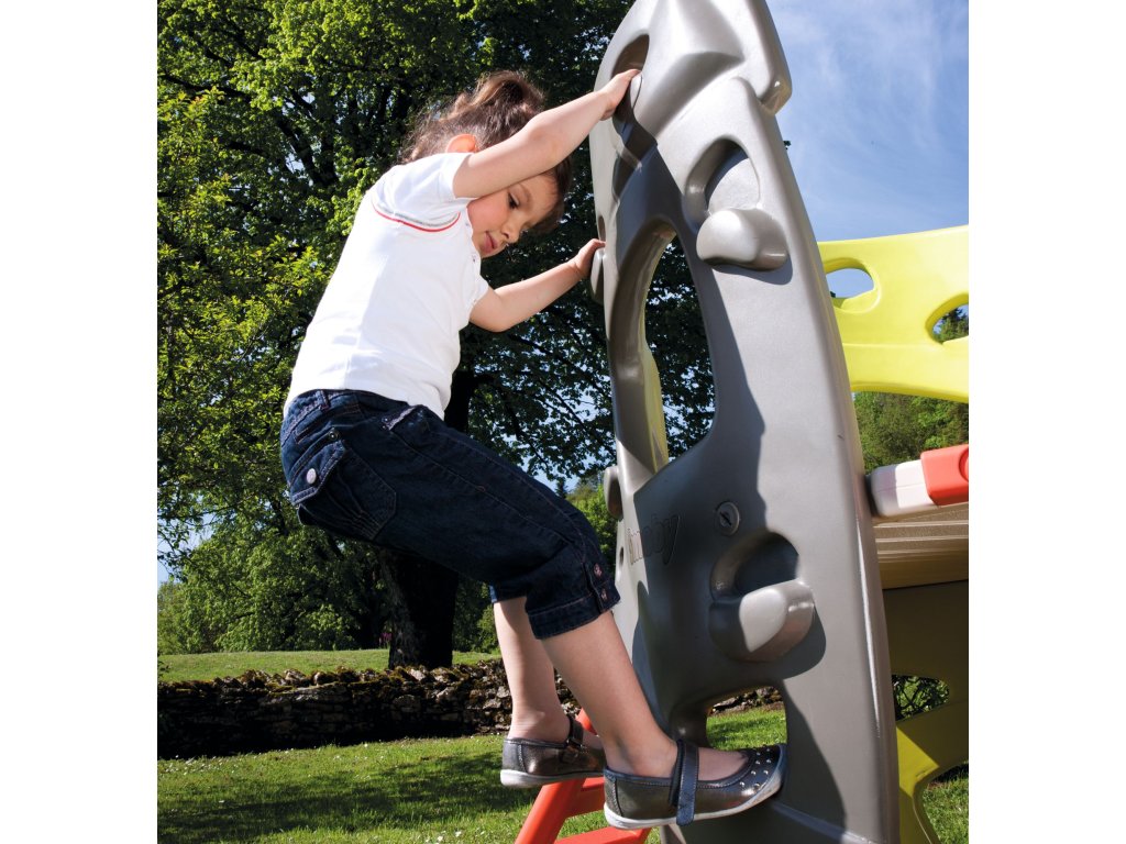 Preliezačka so šmýkačkou s dĺžkou sklzu 150 cm. Súčasťou sú tri steny na lezenie a rebrík. Anti-UV ošetrenie zaručuje dobrú odolnosť a trvanlivosť farieb. Rozmery po zostavení: 230 x 140 x 143 cm. Max. nosnosť šmýkačky 50 kg, max. nosnosť platformy 100 kg. Hmotnosť 29,24 kg.Dodatočné parametre