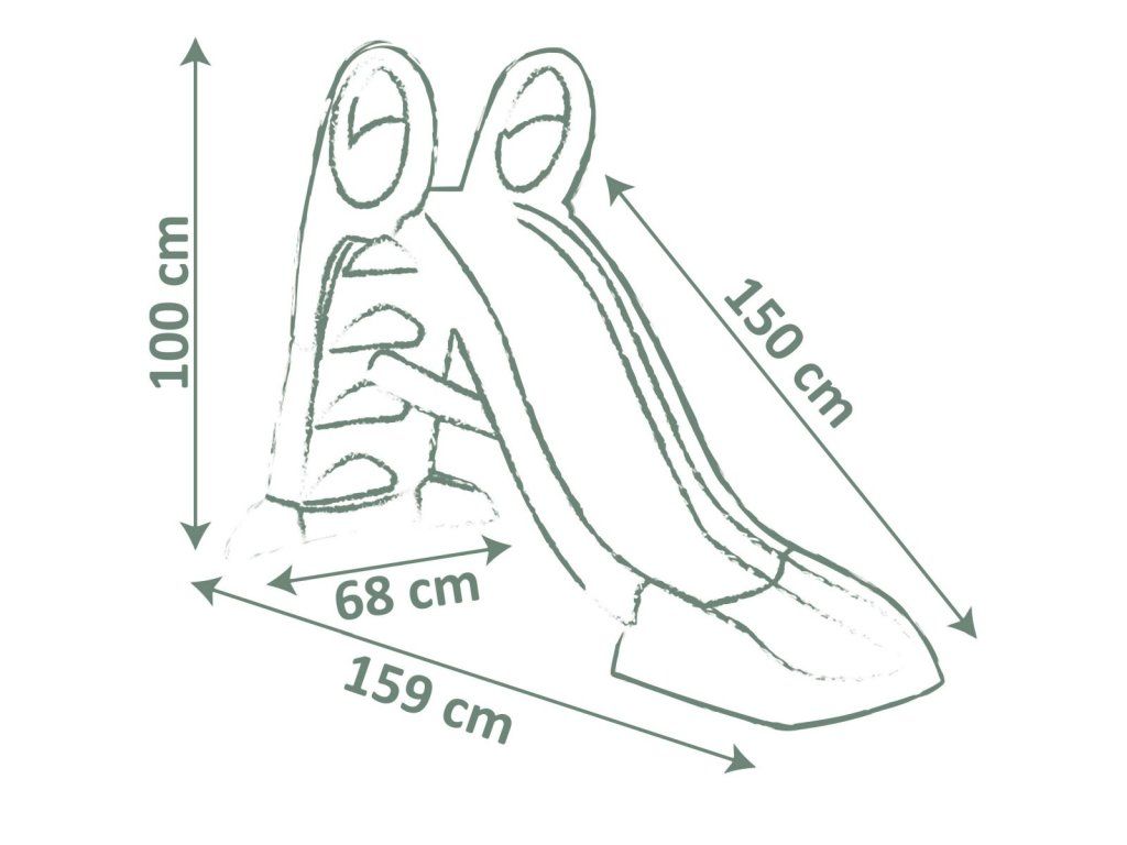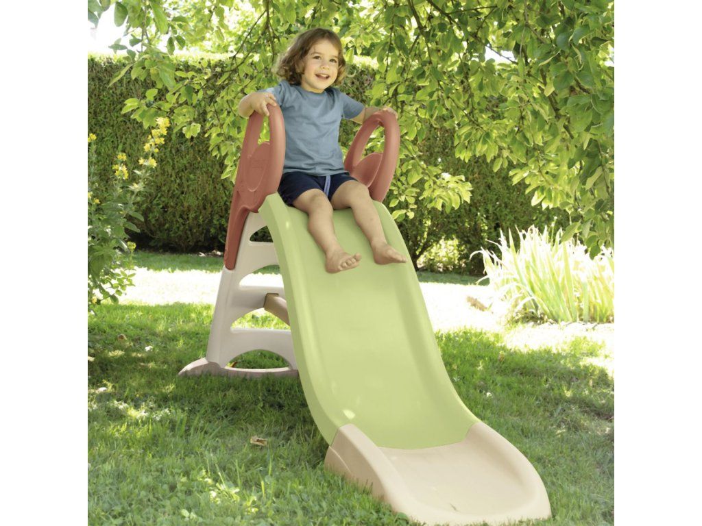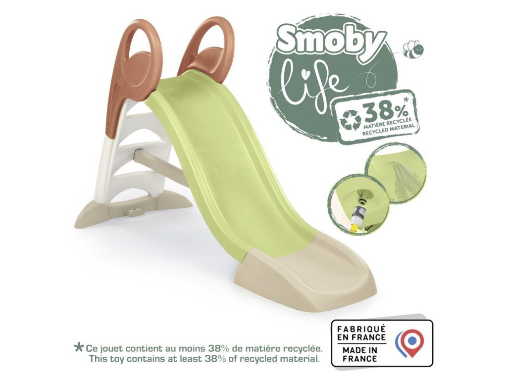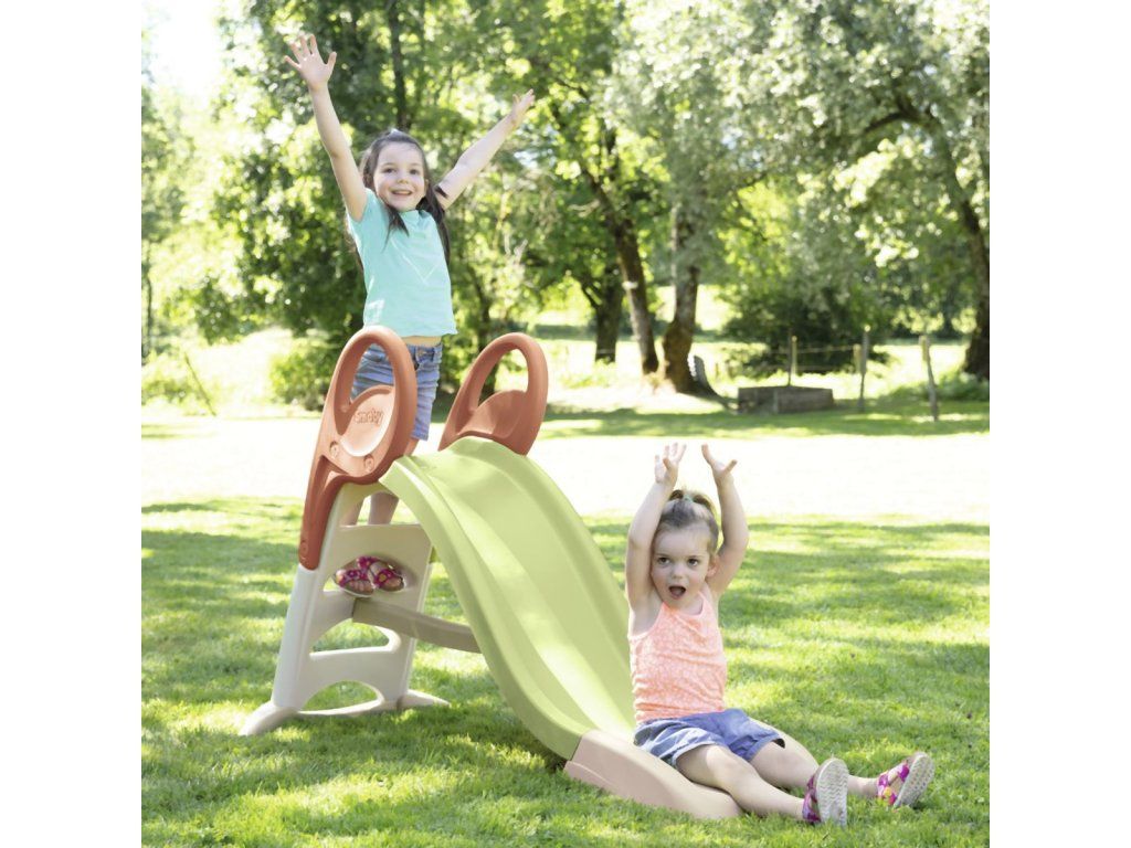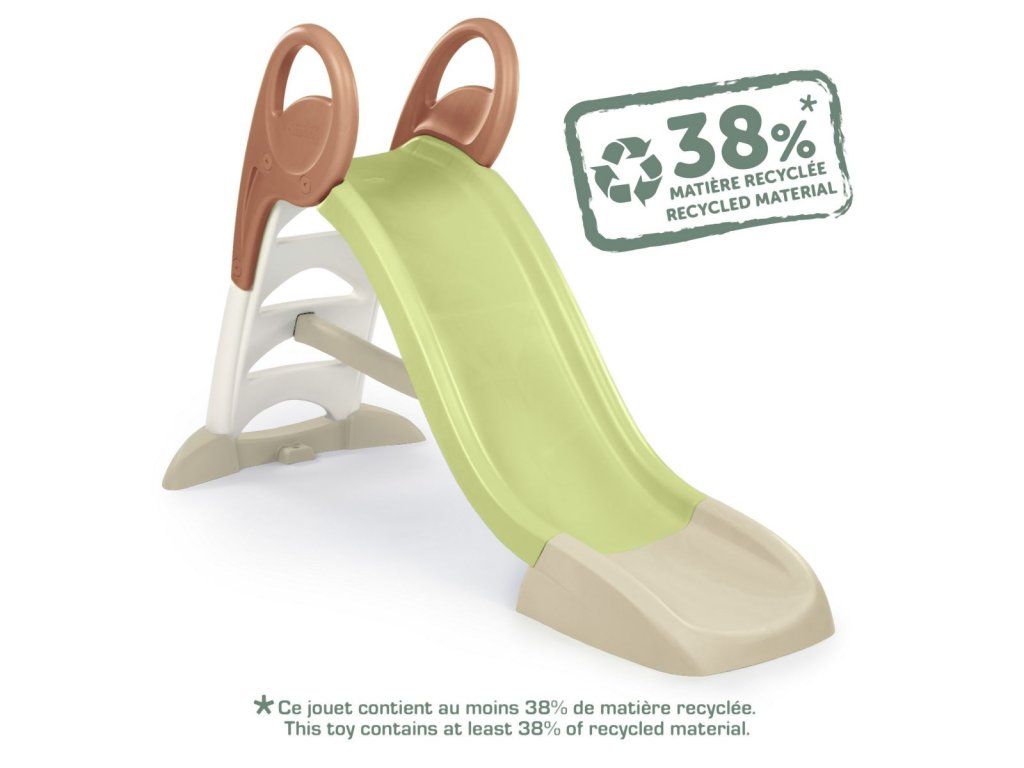 Plastová šmykľavka s dĺžkou sklzu 150 cm. K šmýkačke je možné pripojiť hadicu s vodou a vlhčiť tak sklznú plochu pre ľahšie a rýchlejšie kĺzanie. Tento výrobok obsahuje minimálne 38 % recyklovaného materiálu. Plastové diely sú ošetrené proti UV žiareniu pre dobrú odolnosť a dlhšiu trvanlivosť farieb v priebehu času.Dodatočné parametre
