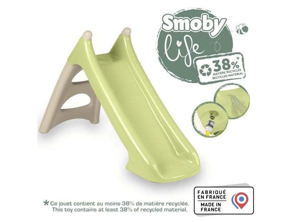 Ergonomická šmykľavka pre najmenších! Smoby Life XS šikovný dizajn pre kompaktné a ľahké skladovanie (rebrík je možné zložiť a dať pod šmýkačku). Dĺžka šmykľavky: 90 cm, s vyfukovaným rebríkom pre extra stabilitu/bezpečnosť a protišmykovými schodíkmi. Obsahuje hadicový nástavec pre vodopád. Maximálna hmotnosť užívateľa: 50 kg. Výrobok obsahuje z 38% recyklovaného plastu. Rozmery šmykľavky (DxŠxV): 125x50x75 cm.Dodatočné parametre