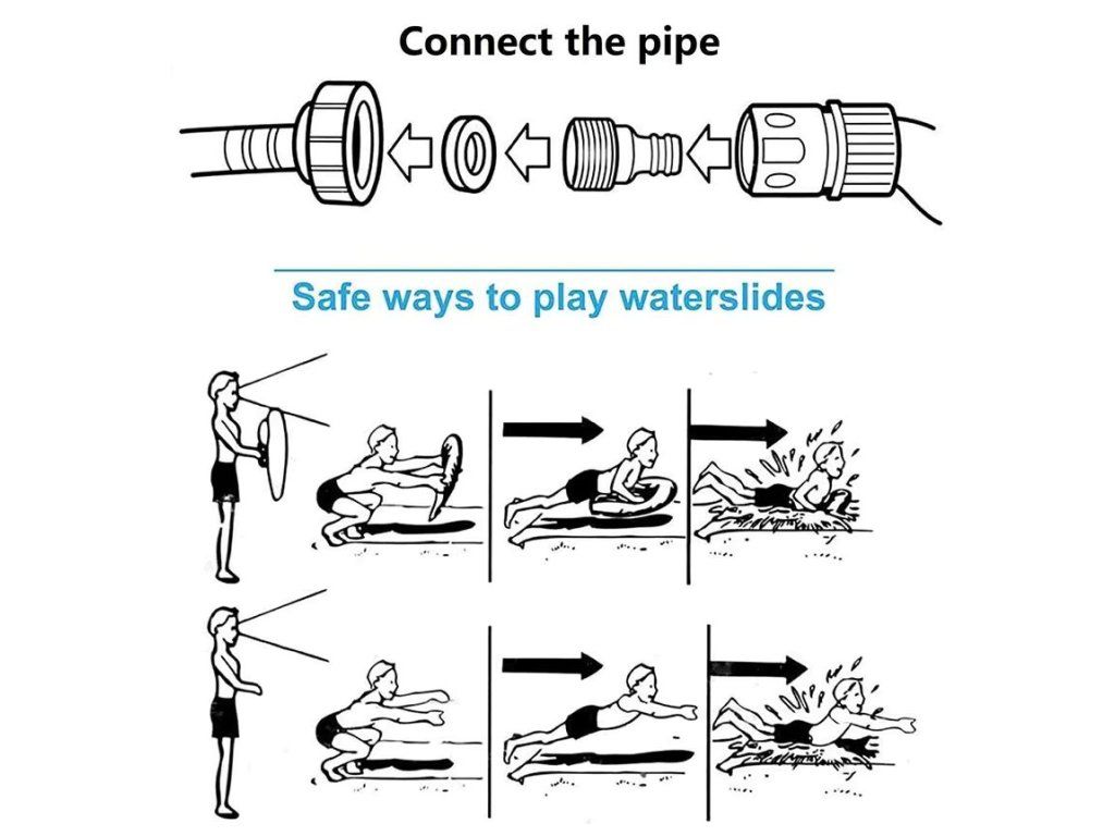 - pripojte šmykľavku na záhradnú hadicu s minimálnym tlakom 1,5 bar